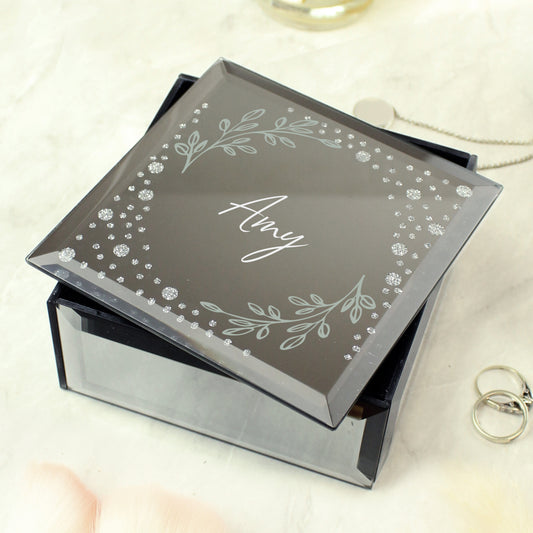 Personalised Big Age Swirls & Hearts Diamante Glass Trinket Box