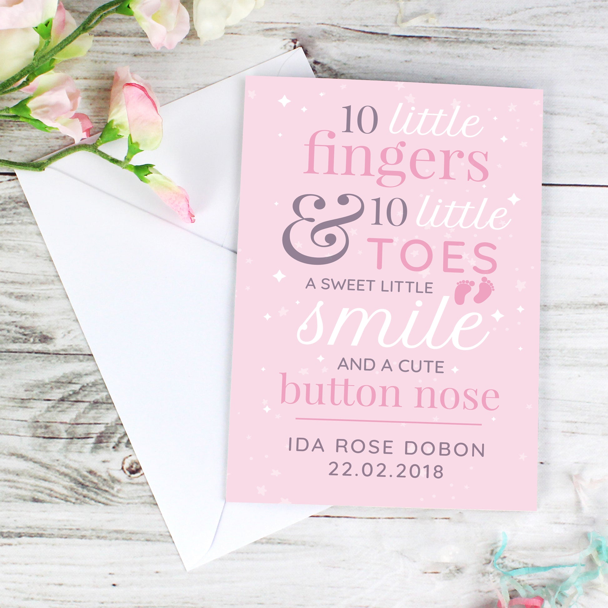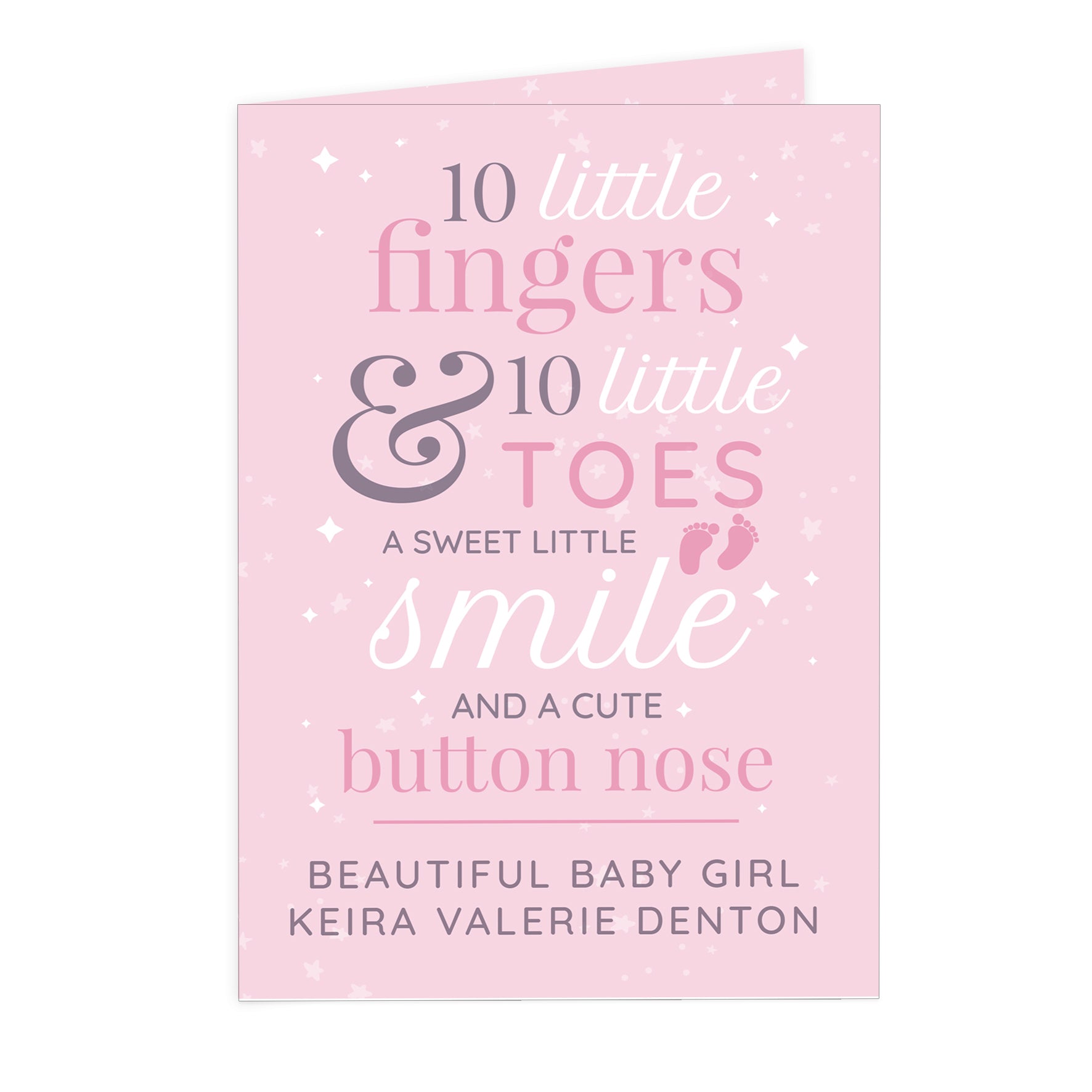 This Personalised '10 little fingers' Baby Girl Card is an adorable way to congratulate the new parents.