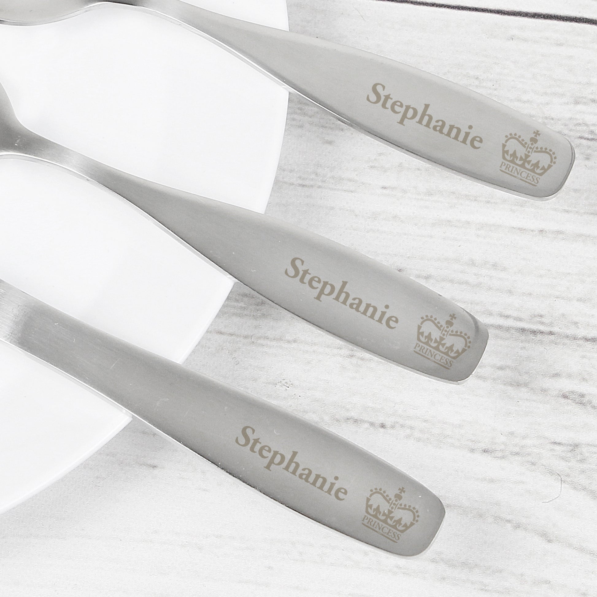 This stainless steel cutlery set can be personalised with any name up to 15 characters.