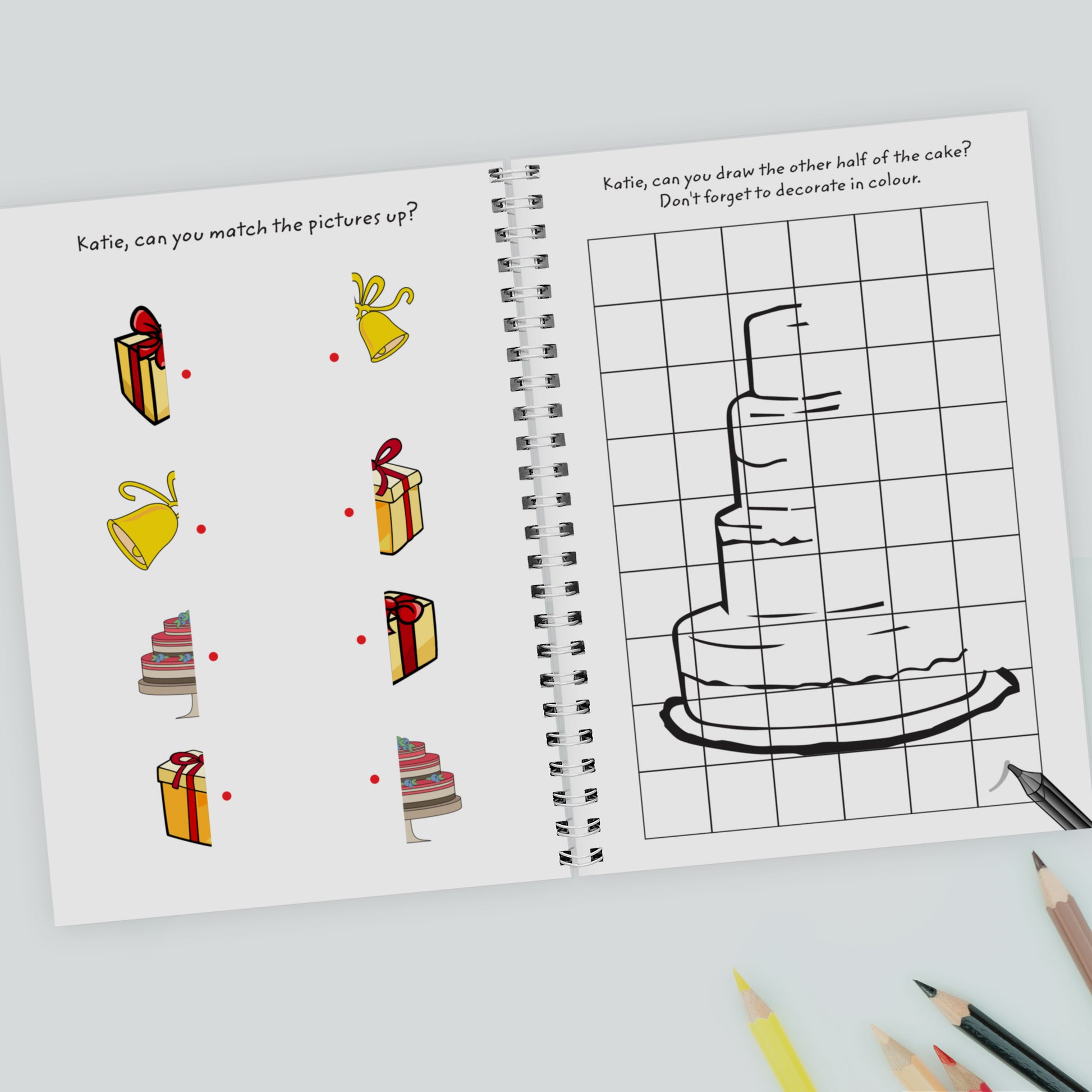 Personalise this activity book with a name and a message. The name (12 characters in length) appears on the front cover and also throughout the activities. The message appears on the first page and can be split over 5 lines of text up to 20 characters per line.