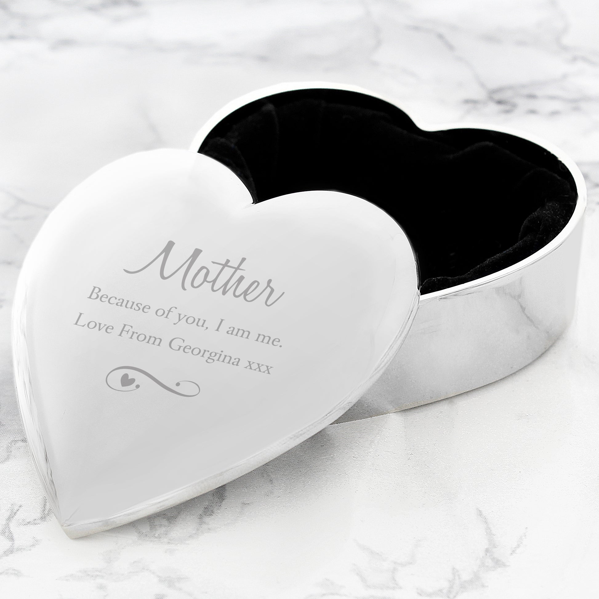 Personalise this trinket box with a name up to 12 characters in length and a message over 2 lines of 25 characters per line.
