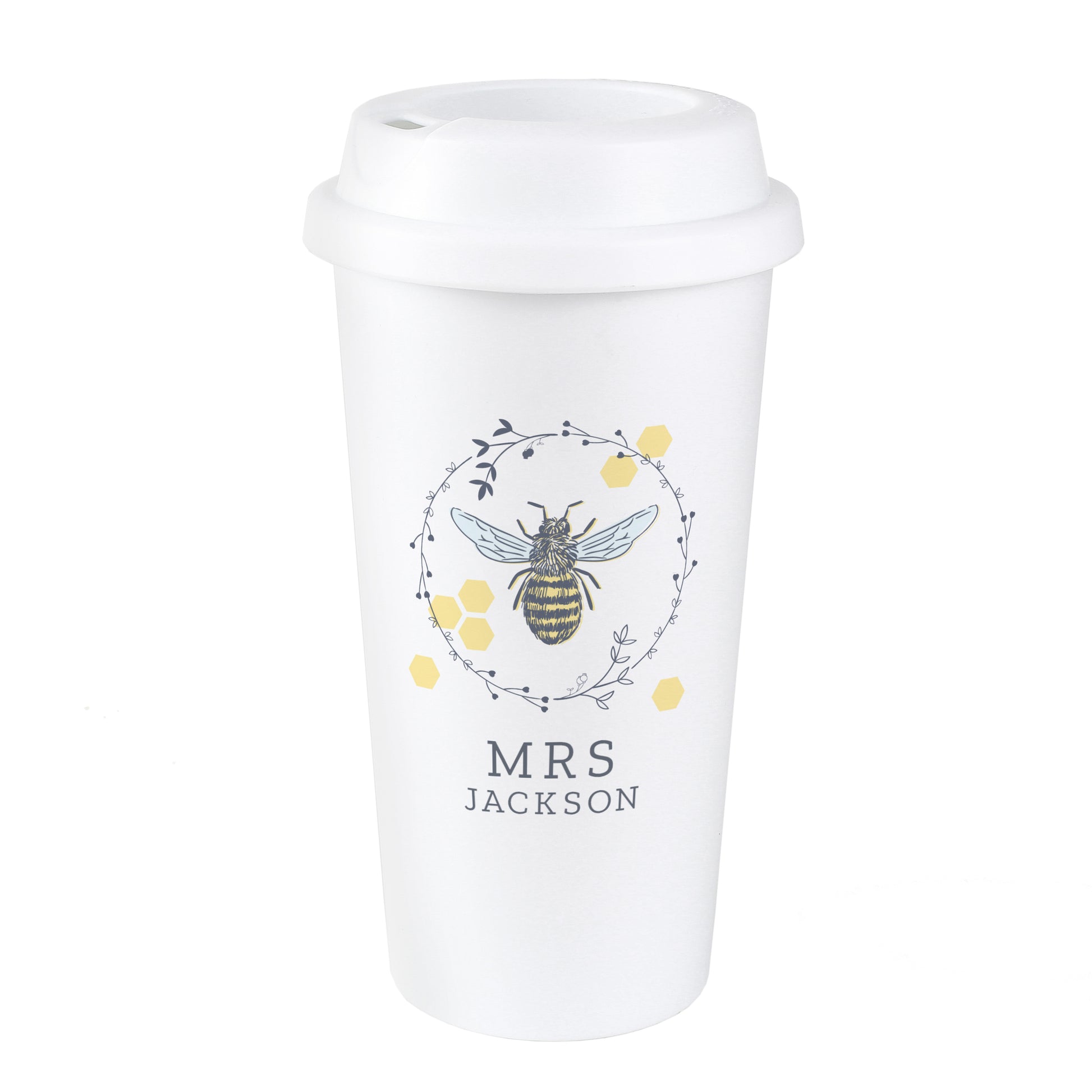 You can personalise this travel mug with two lines of text, each containing up to 15 characters per line.