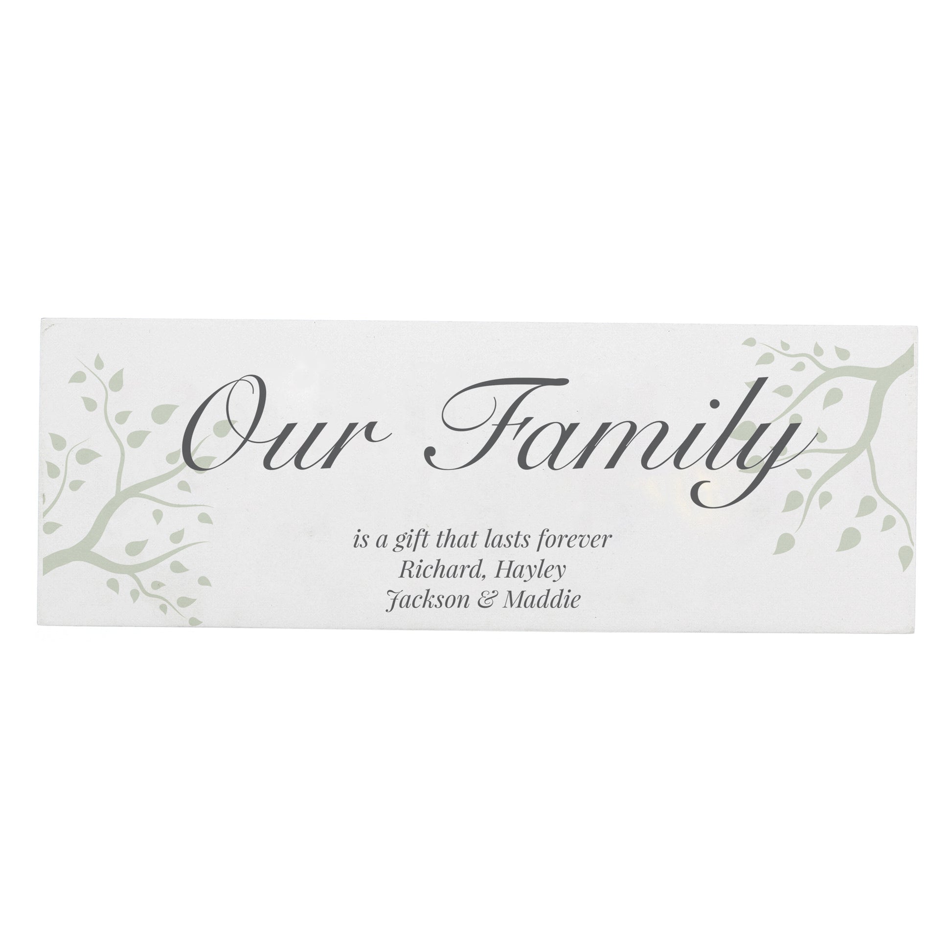 The mantel block can be personalised with 4 lines of text. Line 1 can be personalised with up to 20 characters (larger text) you can also personalise this block with 3 message lines with up to 50 characters per line. Please note that all personalisation will appear as entered.