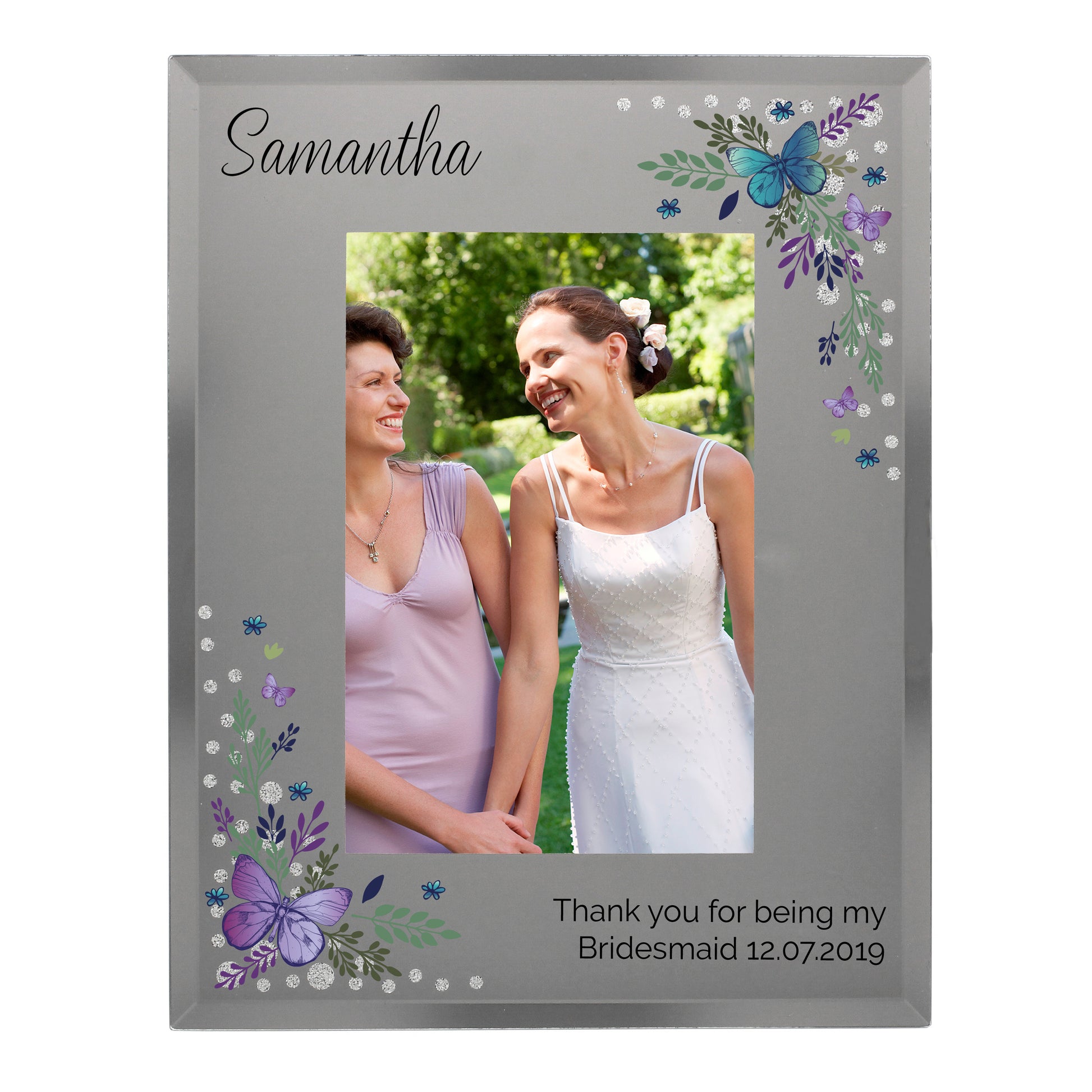 Personalised Butterfly 6x4 Diamante Glass Photo Frame