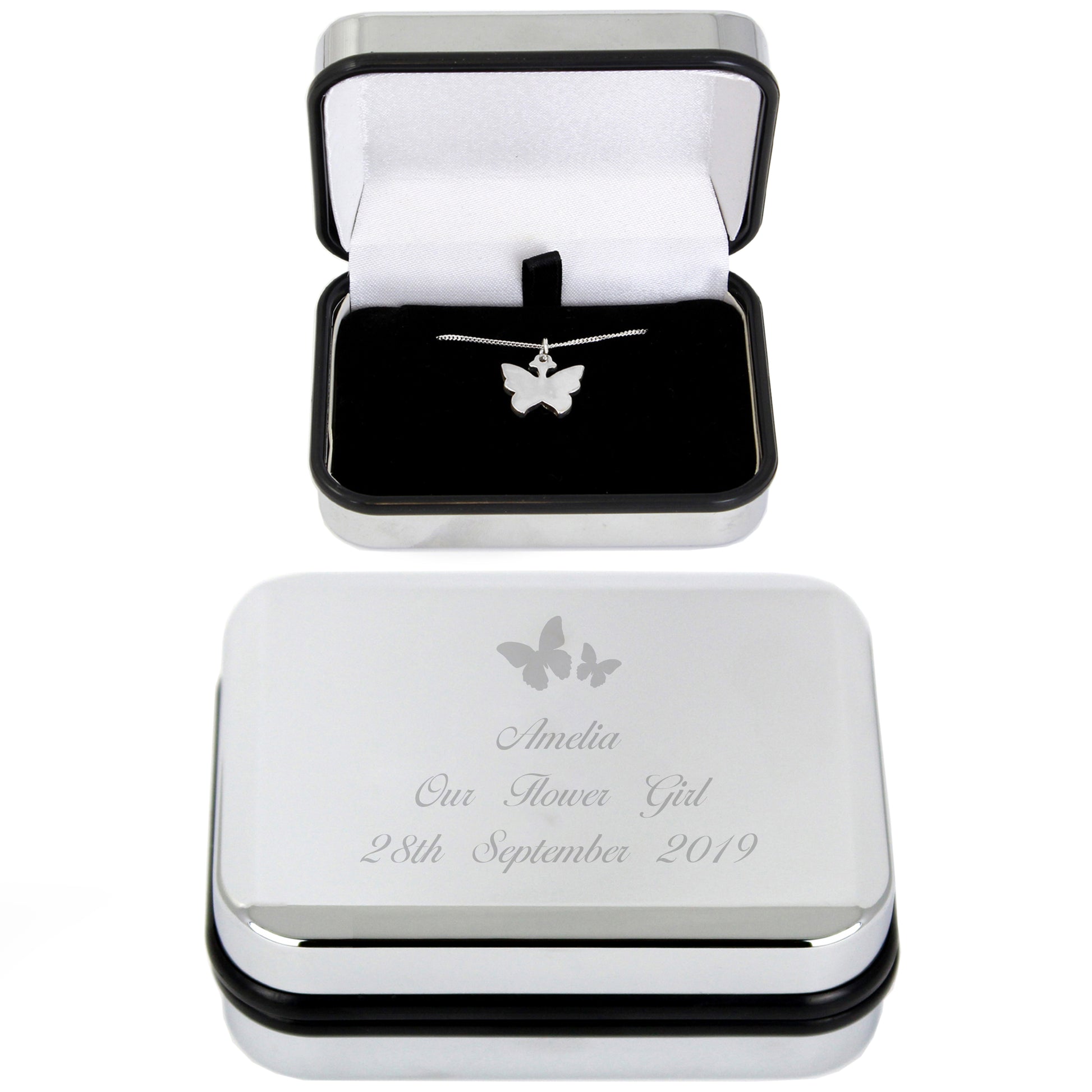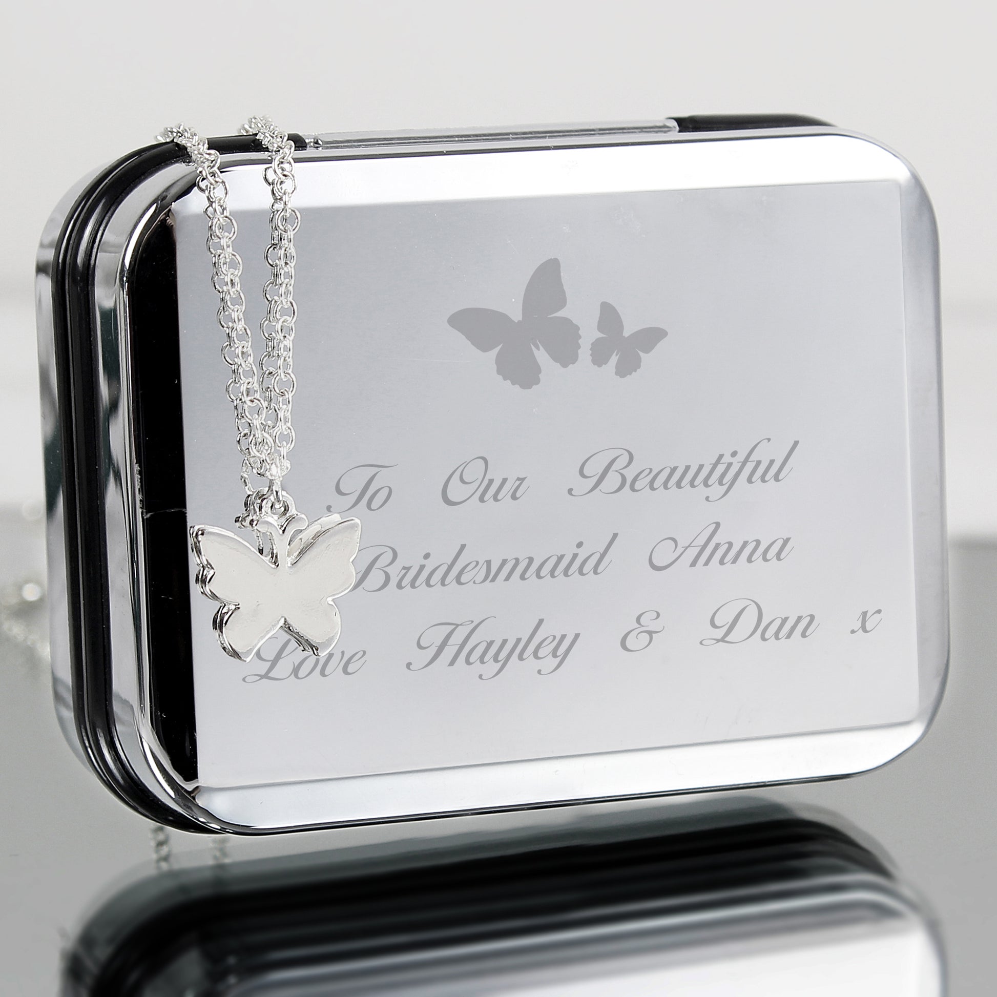 Personalise this Butterfly Swirl Necklace Box with 3 lines, 20 characters per line.