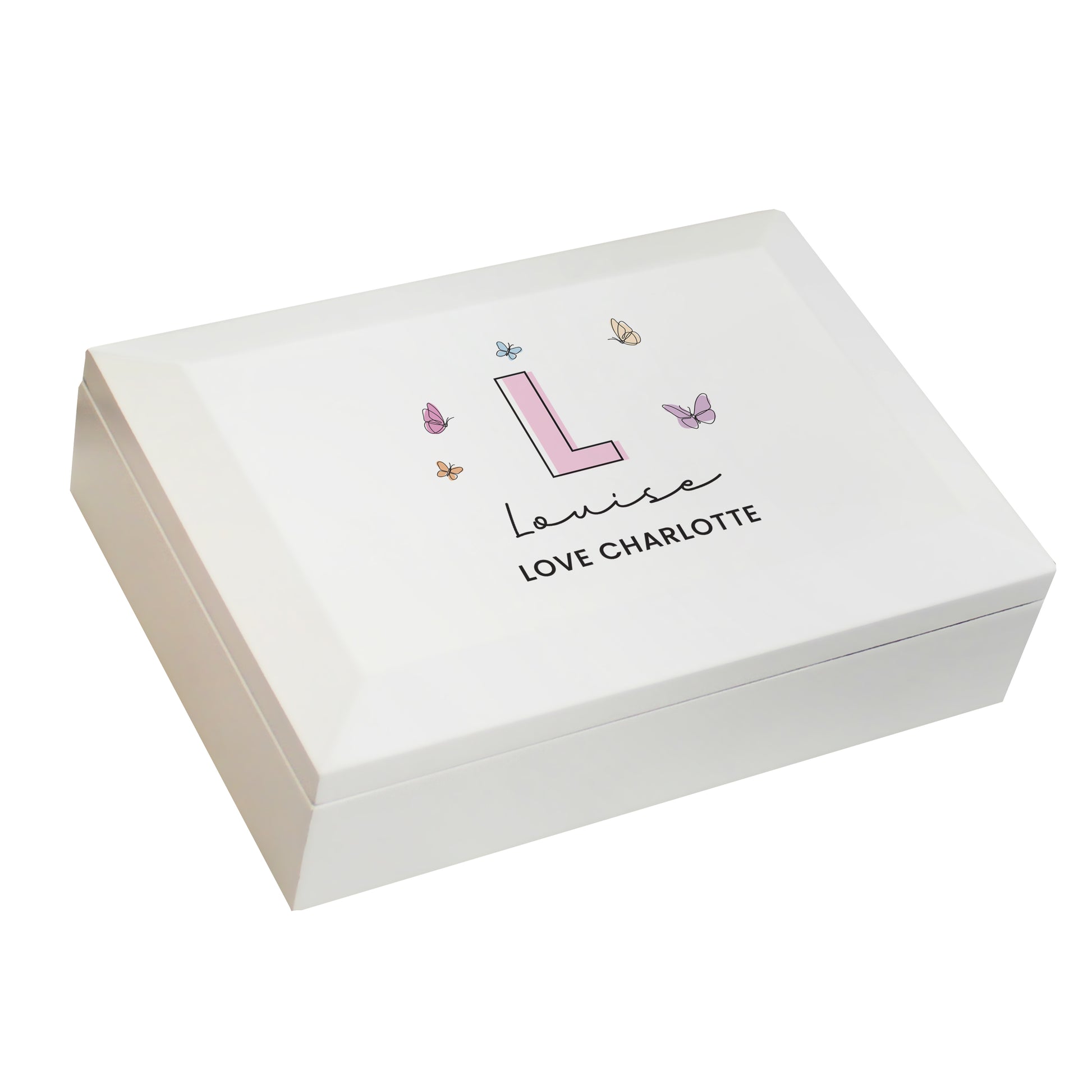 Elevate your gift-giving with our stunning Personalised Butterfly Initial Wooden Jewellery Box.