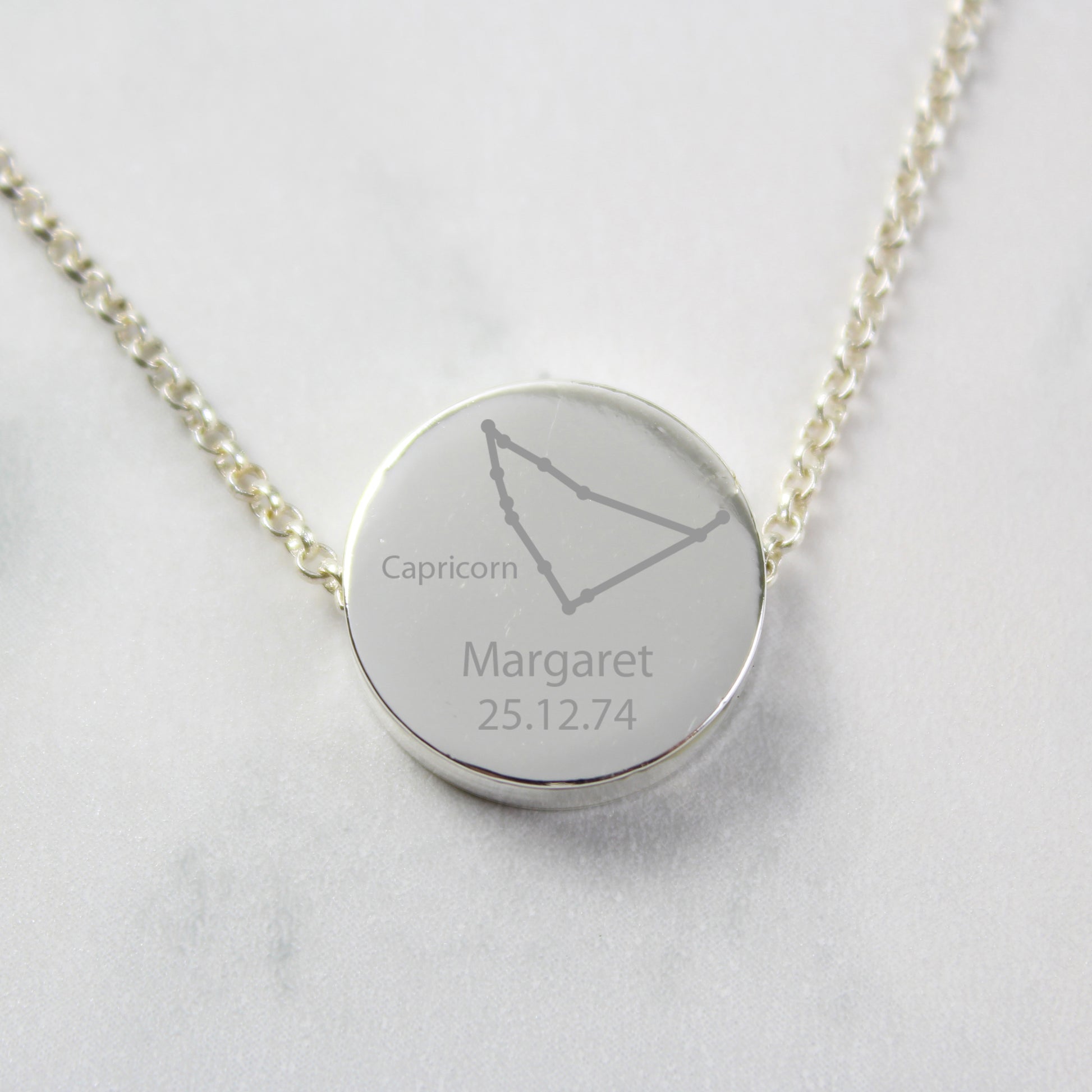 This Personalised Silver Tone Capricorn (December 22nd-January 19th) Disc Necklace is a stylish and elegant gift for her that is suited to all occasions.