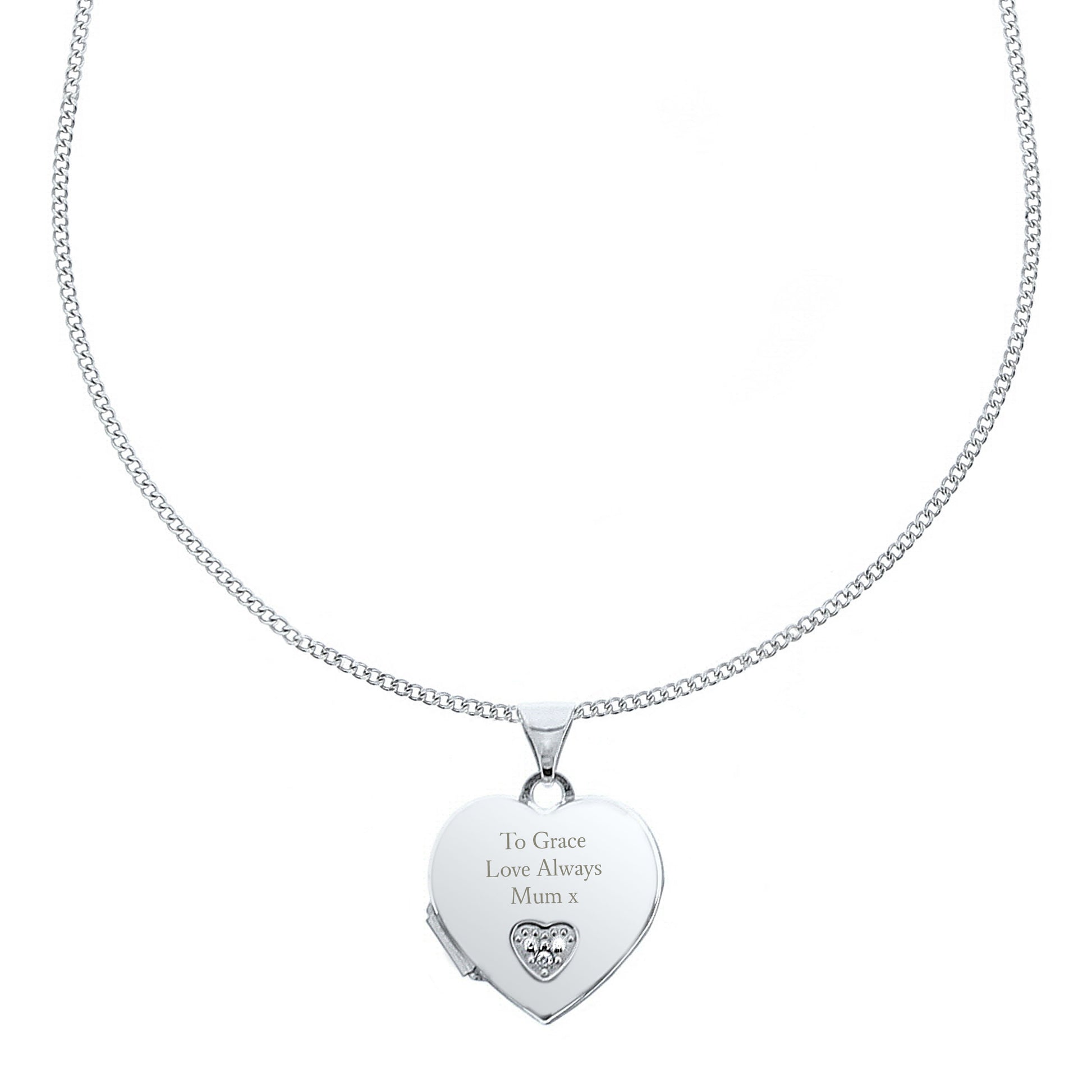 Personalised Children's Sterling Silver and Cubic Zirconia Heart Locket Necklace