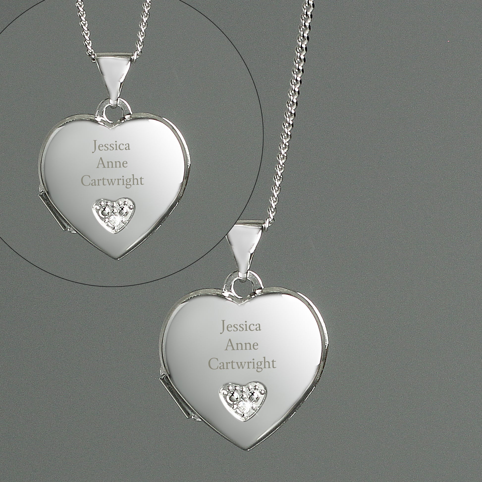 The locket can be personalised with 3 lines of text. Lines 1 and 2 can fit up to 12 characters per line. Line 3 can fit 10 characters.