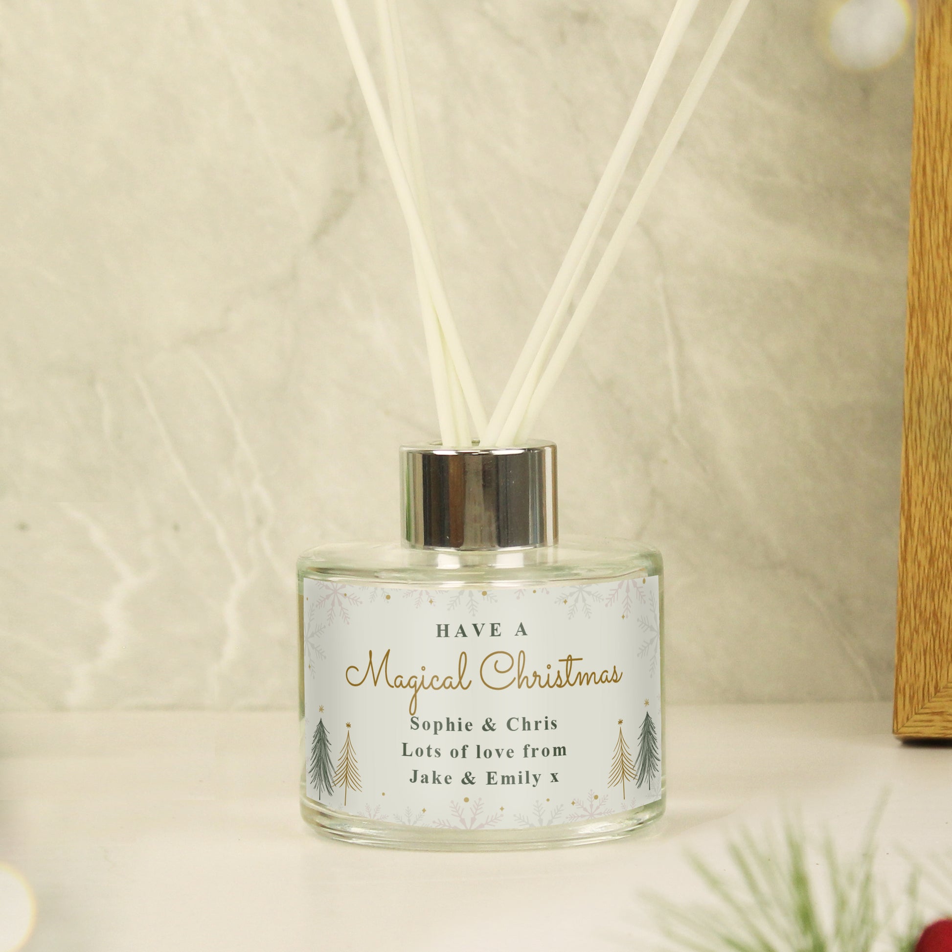 Add a fresh scent to any room with our Personalised Christmas Tree Reed Diffuser. It makes a perfect gift for any recipient at Christmas!