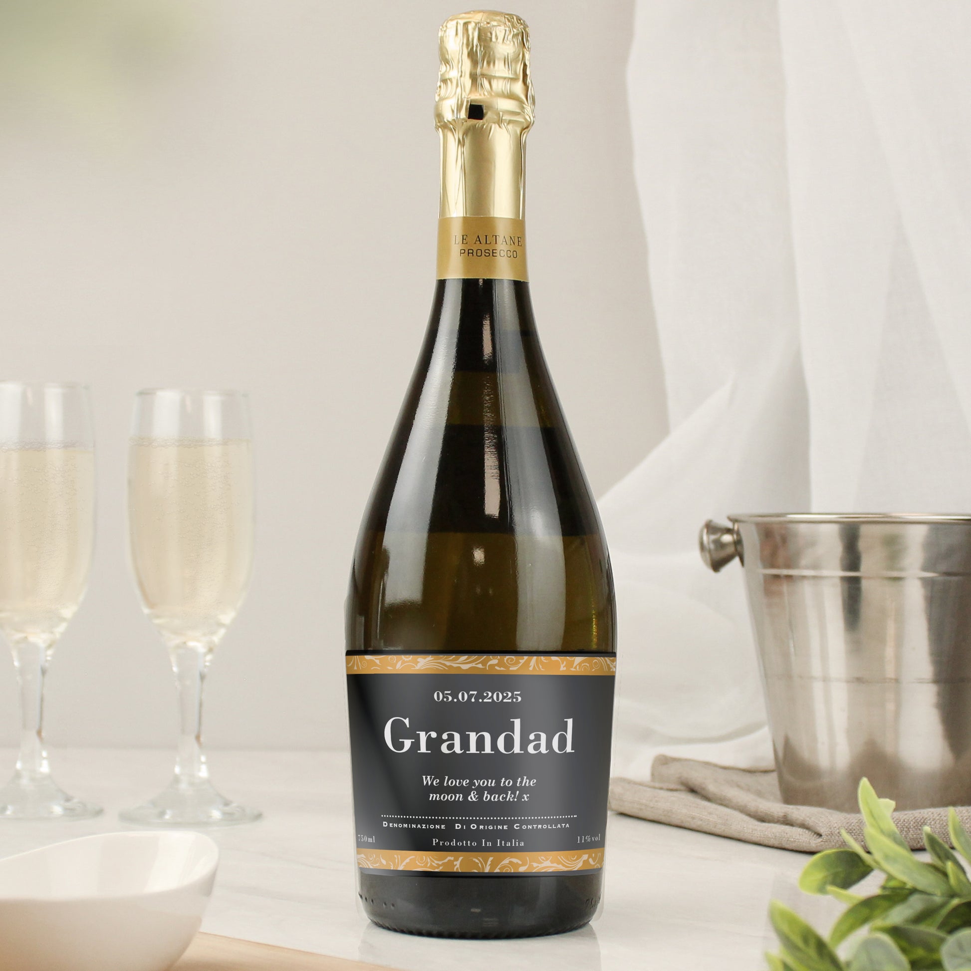 Any name and date can be added to the bespoke black label on this quality Prosecco.