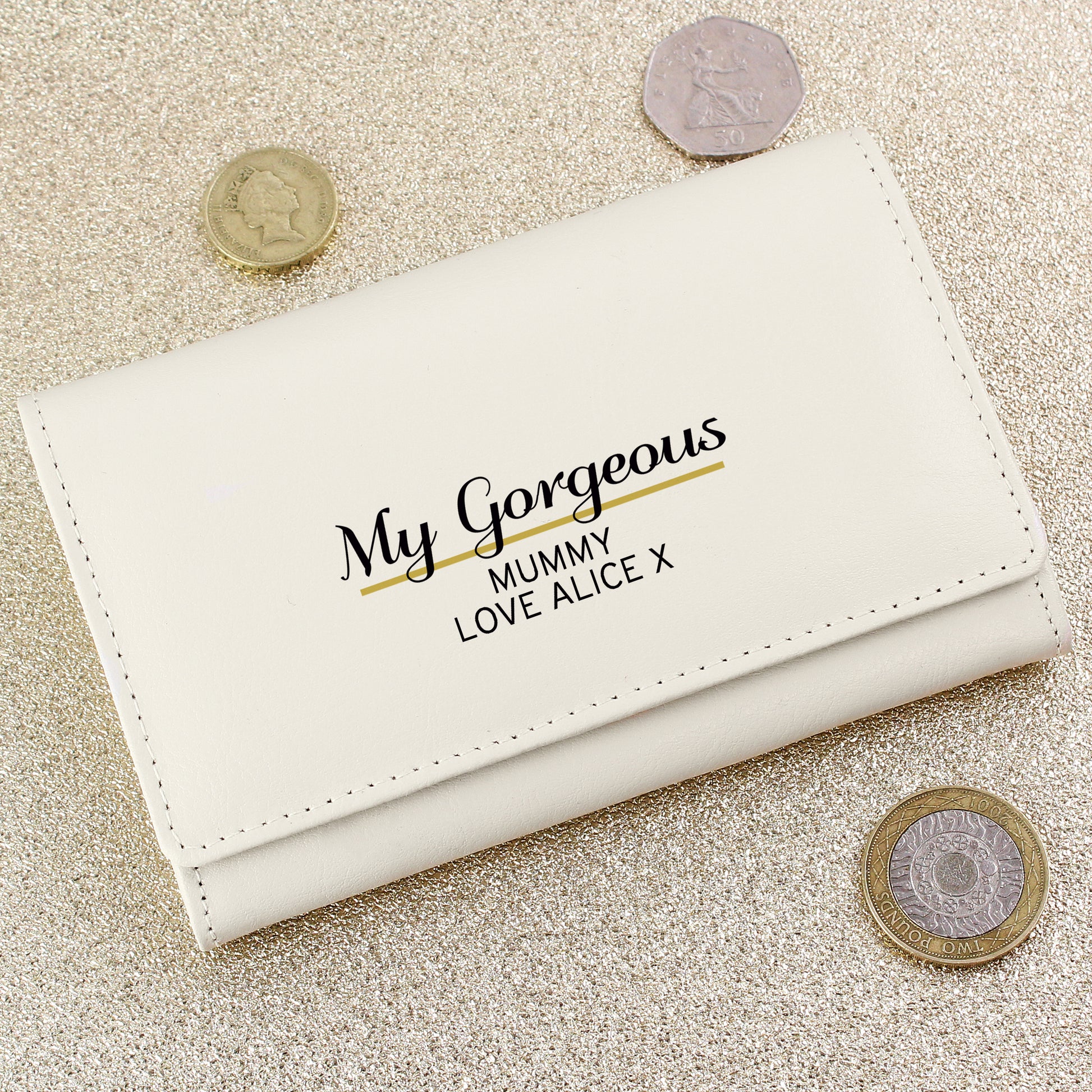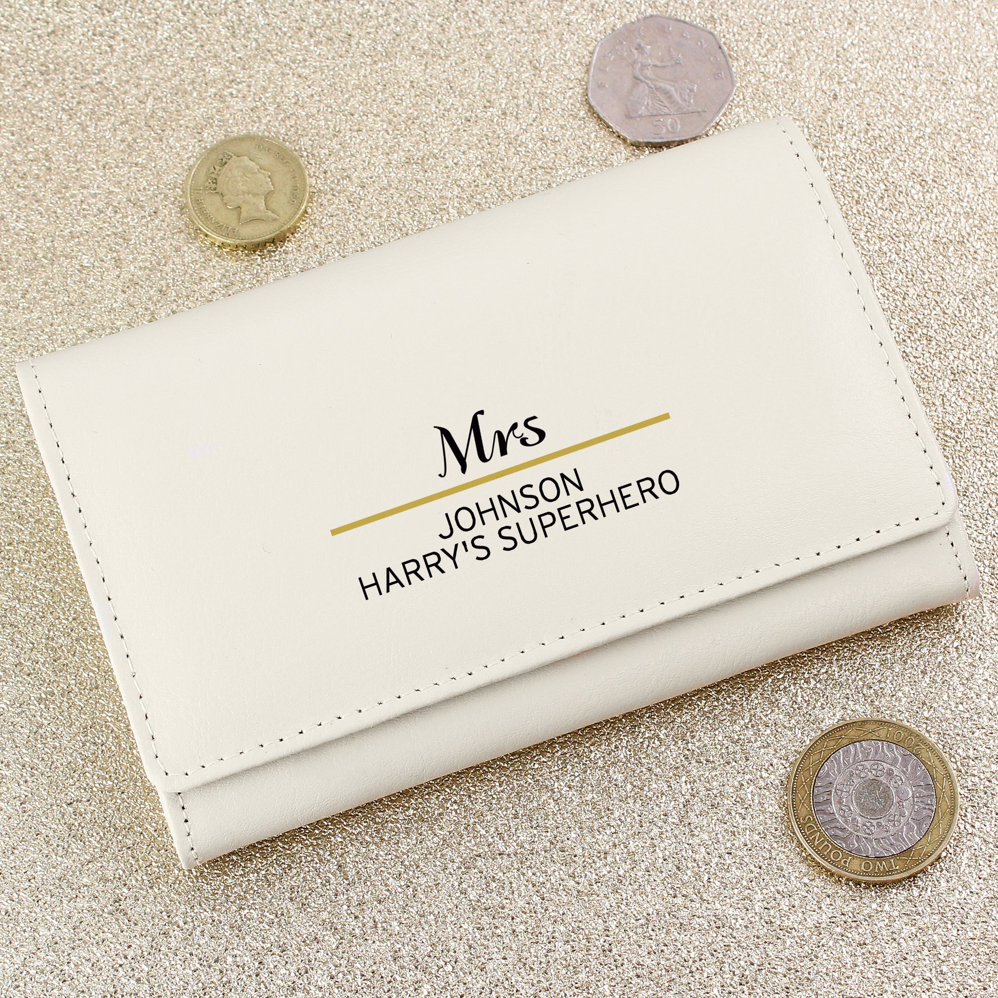 Personalised Classic Cream Leather Purse