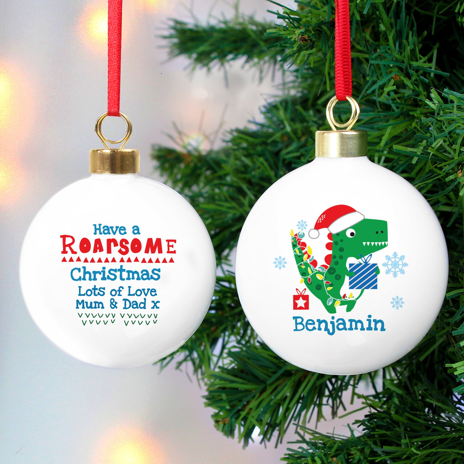 Personalised Dinosaur 'Have a Roarsome Christmas' Bauble