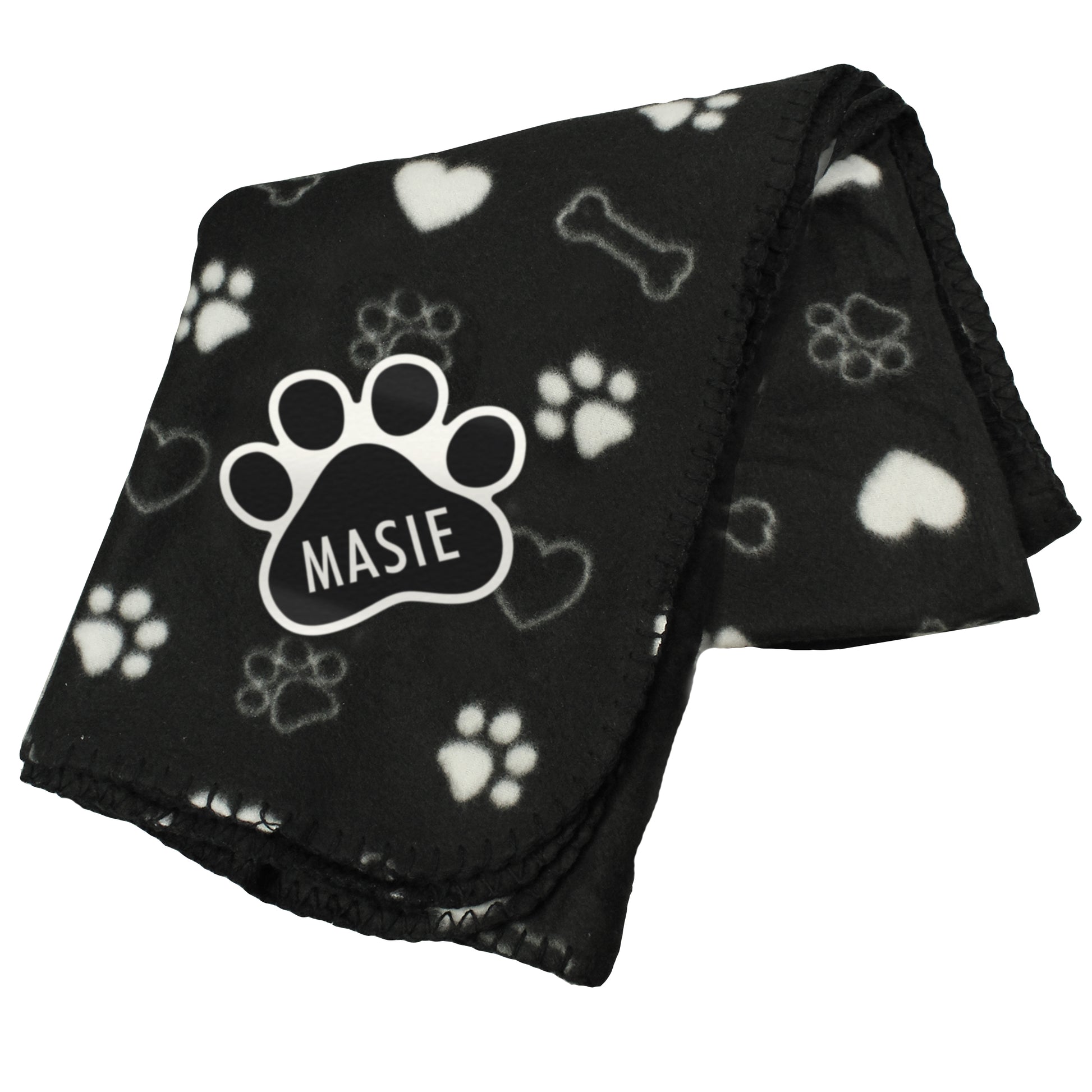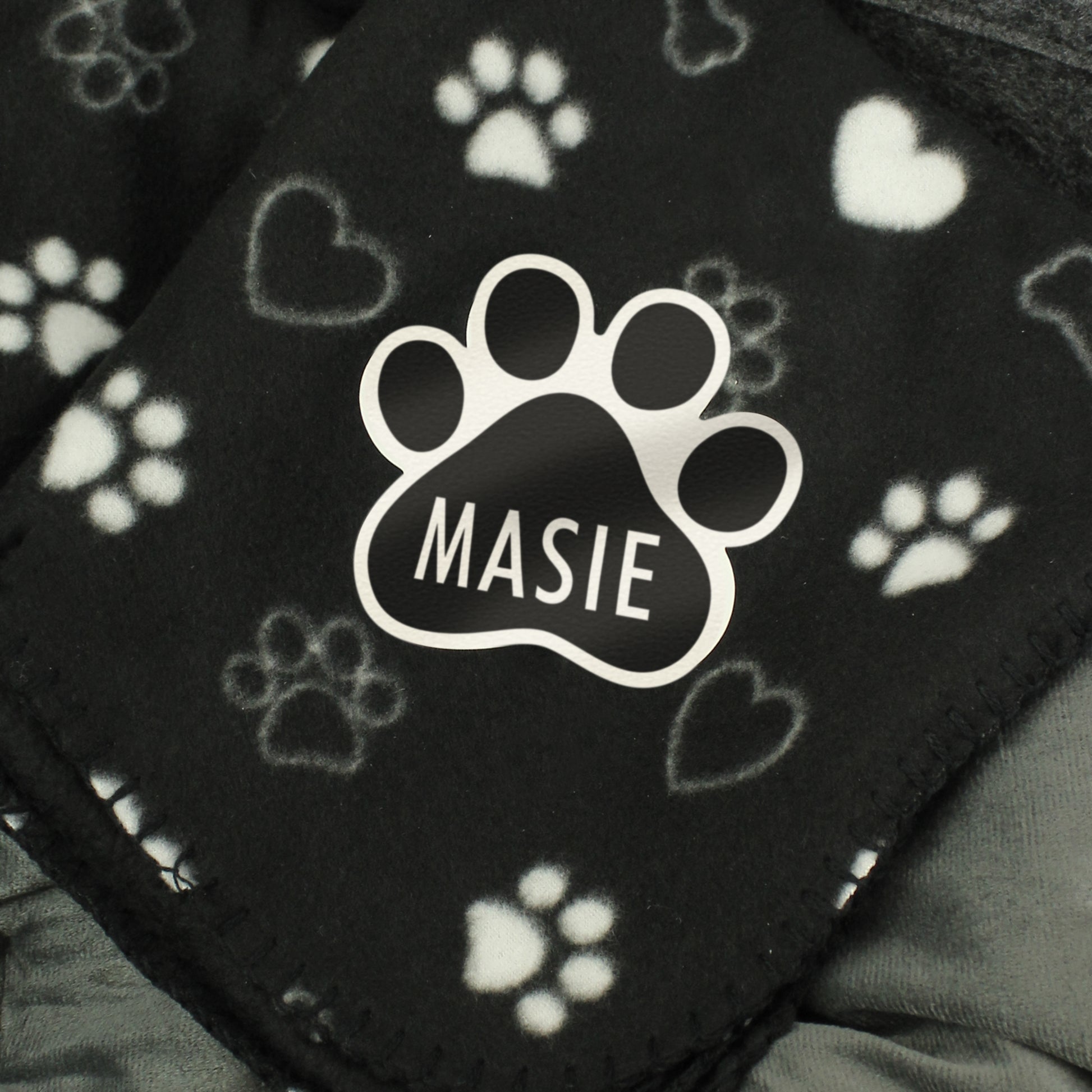 Personalise this Dog Paw Print Fleece Blanket with your dog's name of up to 15 characters.