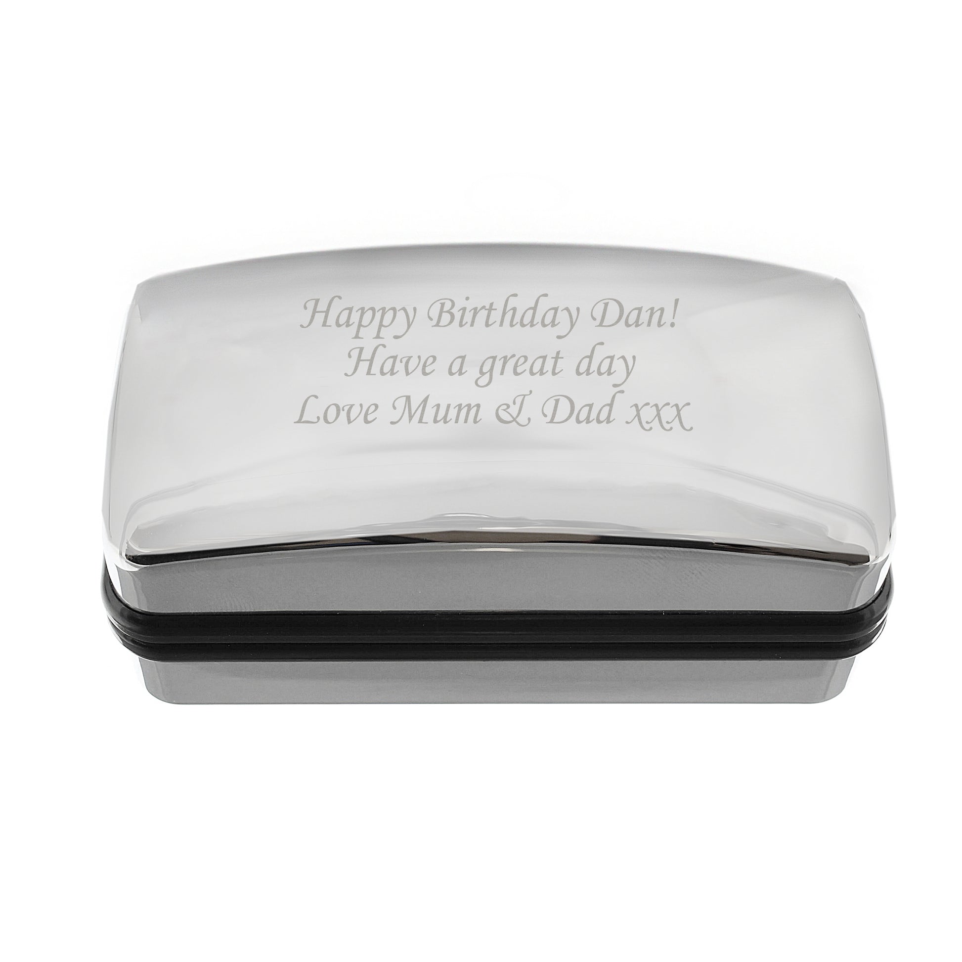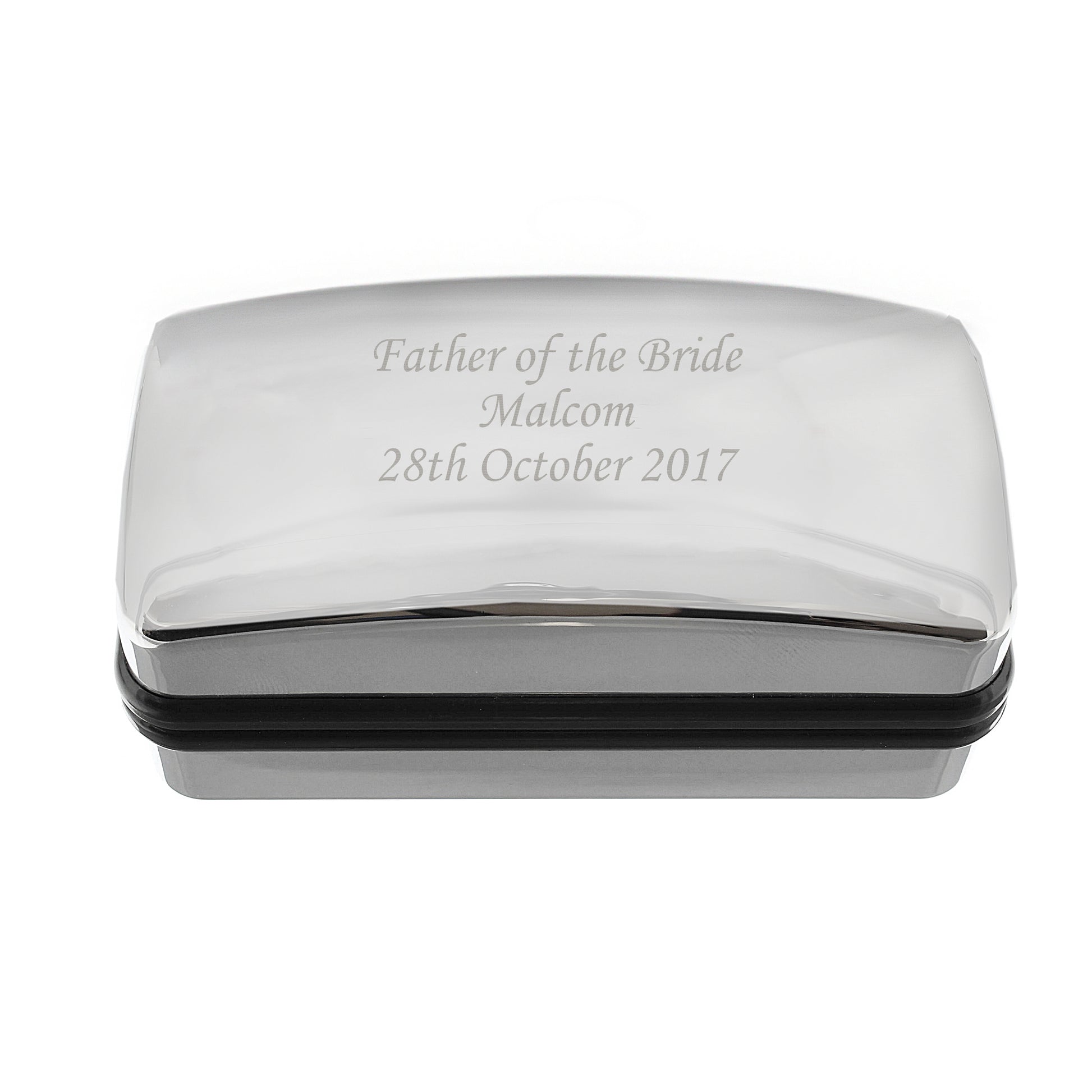 This silver finished cufflink box makes the perfect personalised presentation box for any occasion.