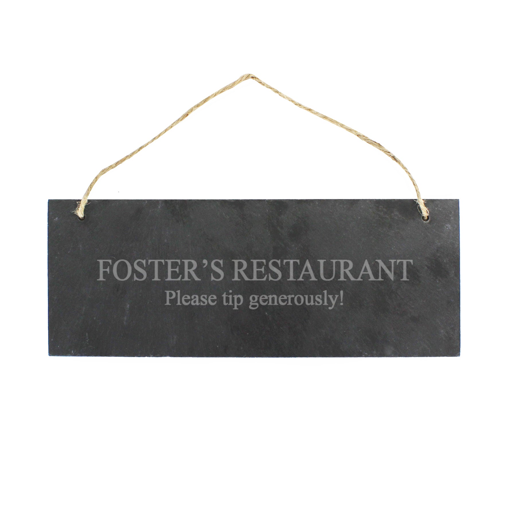Personalise this Slate Door Sign with one line of 25 characters which is in bold, and one line of 40 characters for a longer message. The door plaque has a piece of natural, rustic string which enables this item to be hung up.