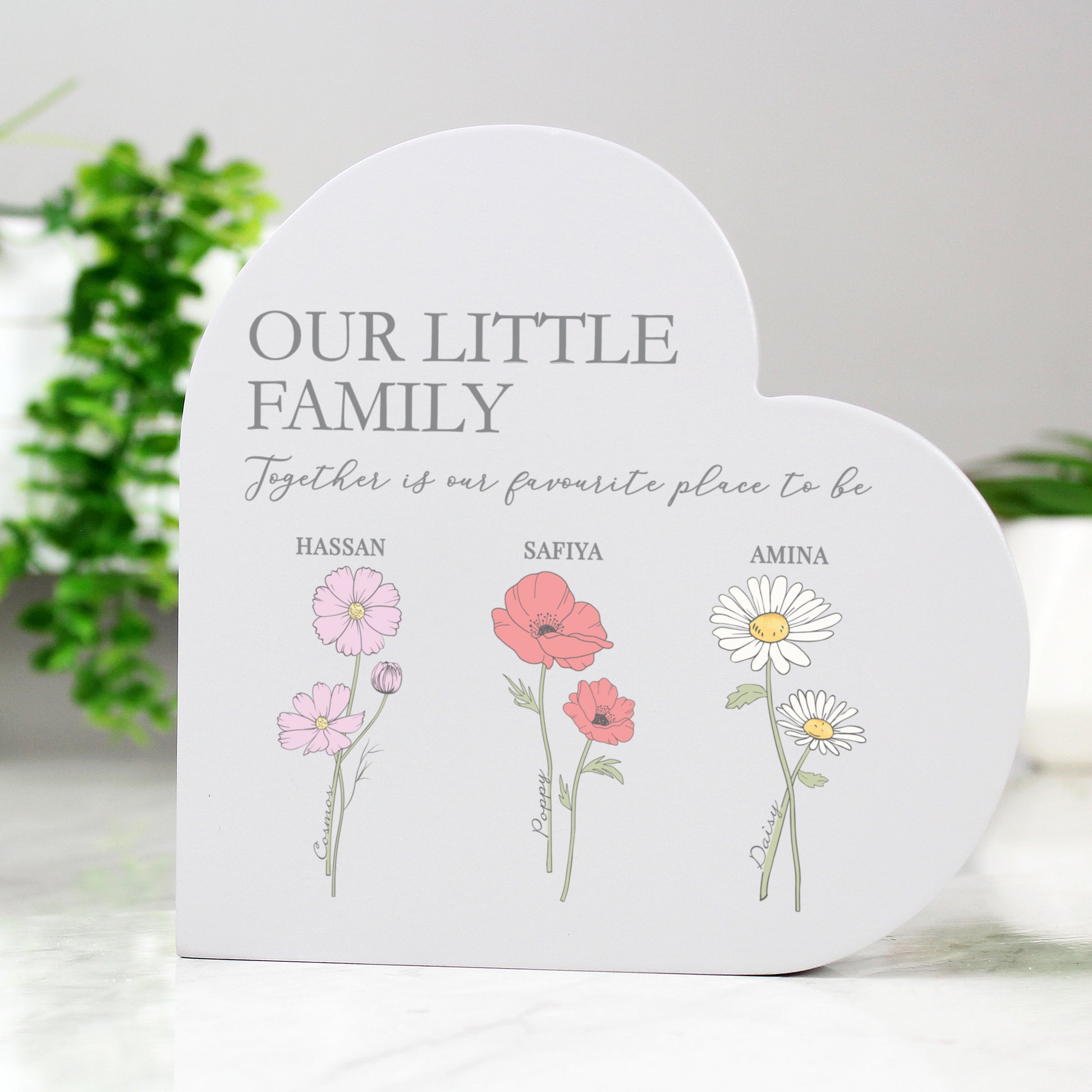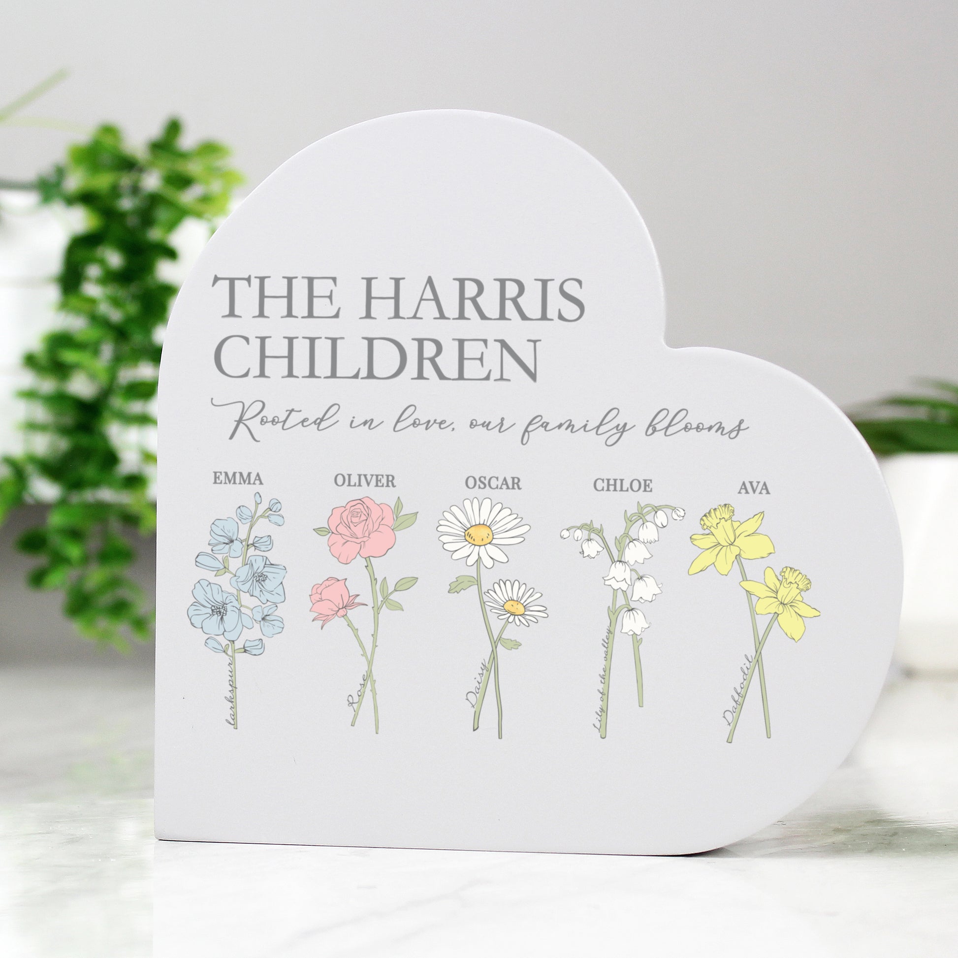 This unique grey heart ornament can be personalised with 3 message lines along the top and then up to 6 flowers below, each with a name underneath.
