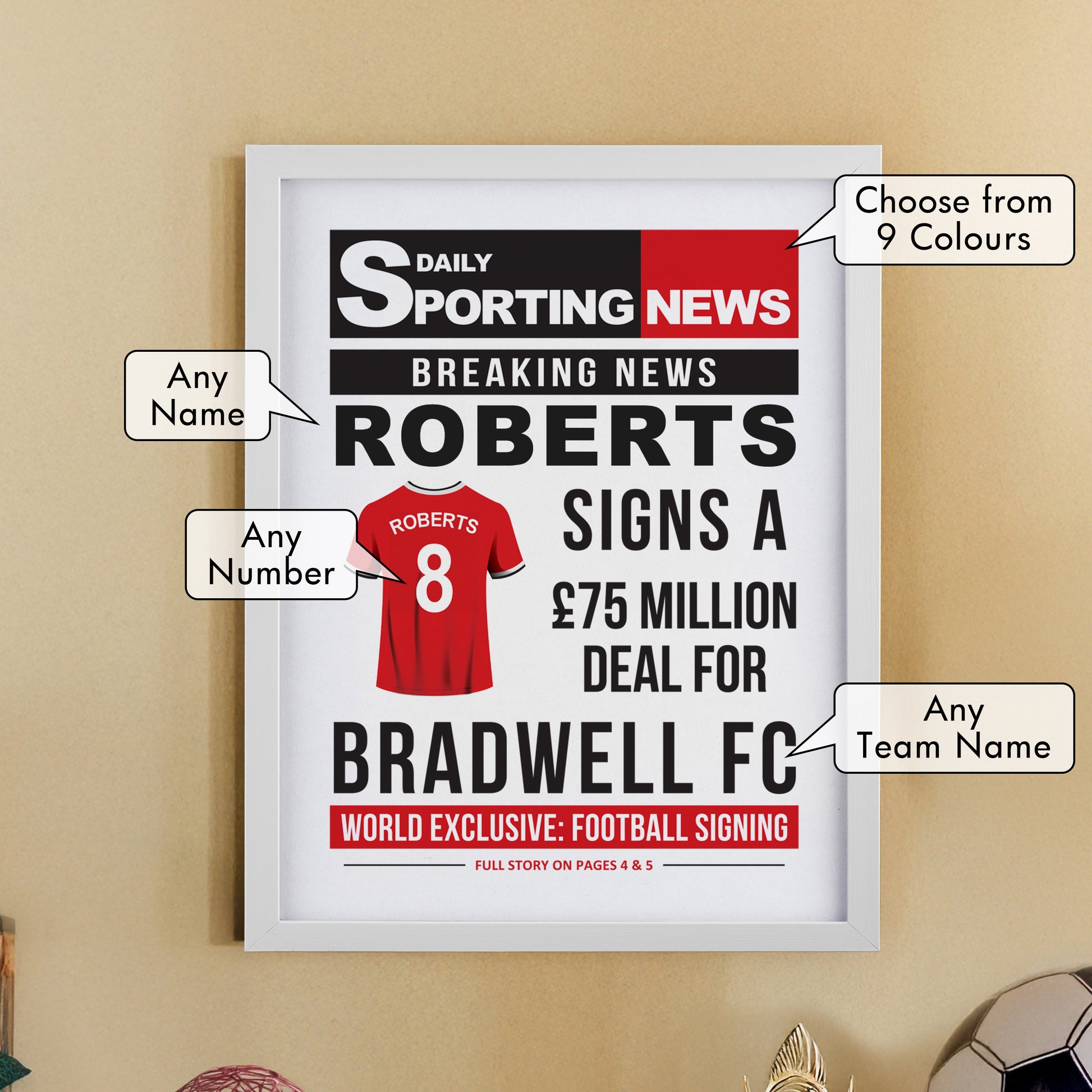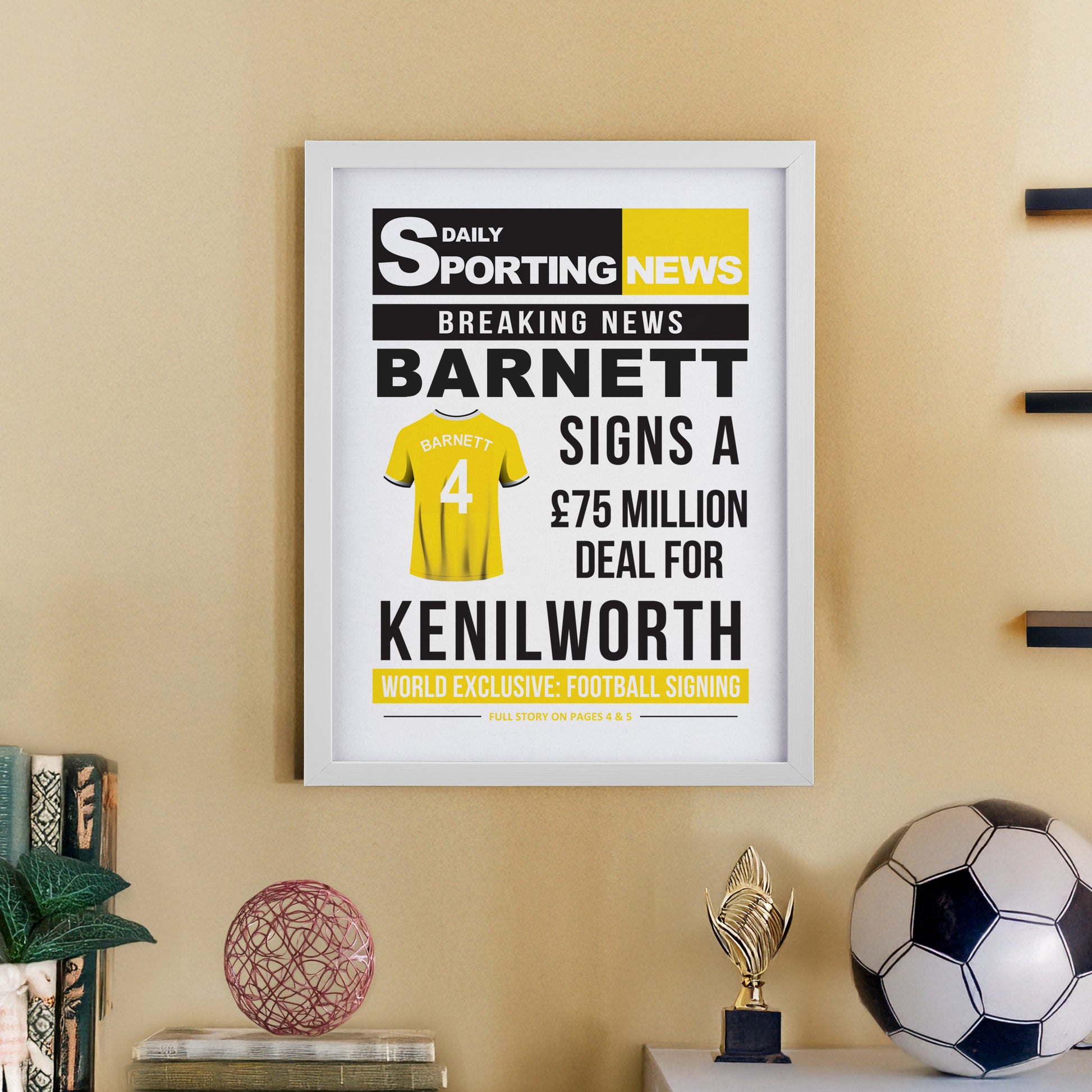 This personalised football signing newspaper framed print is perfect for any football lover!