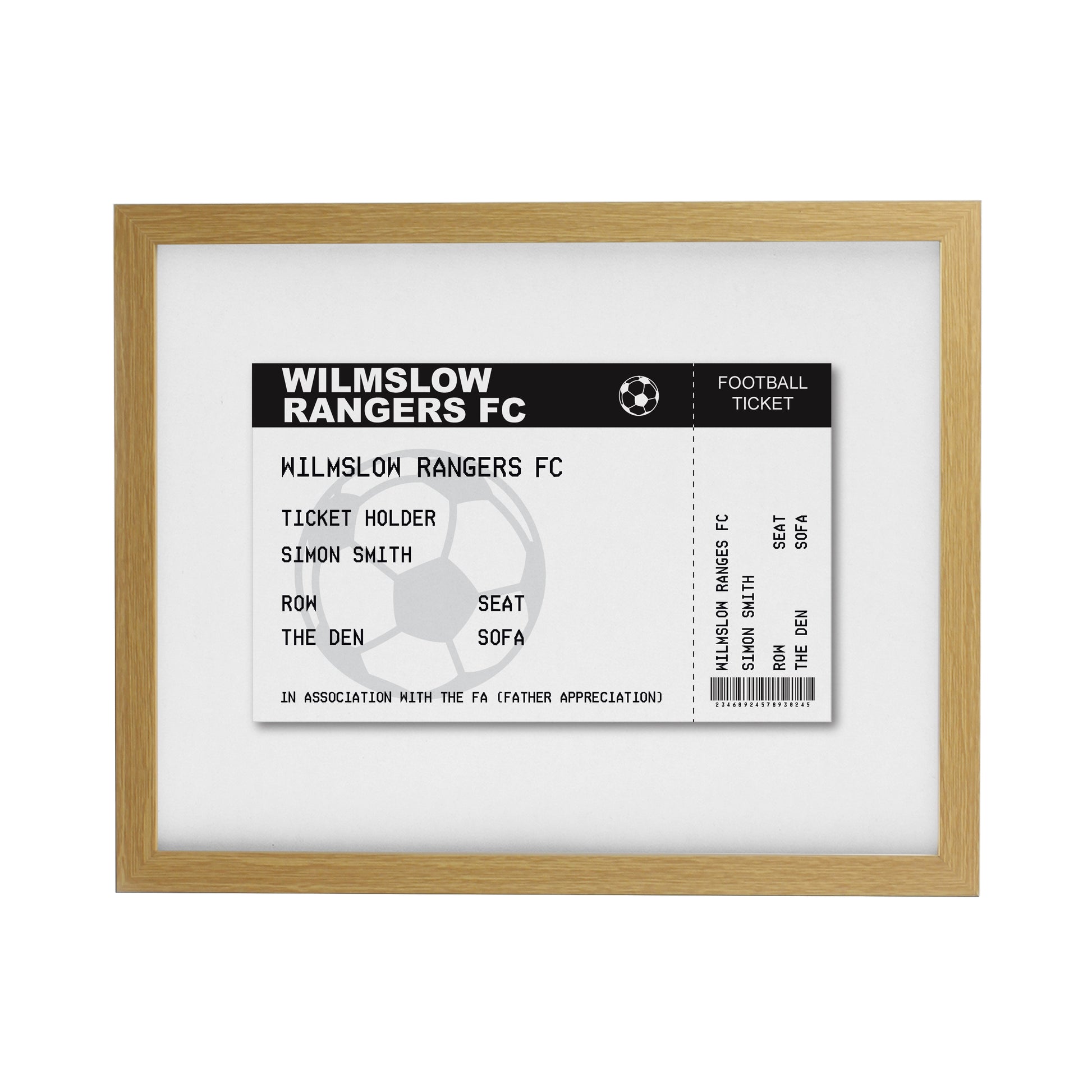 Personalised Football Ticket Oak Poster Frame