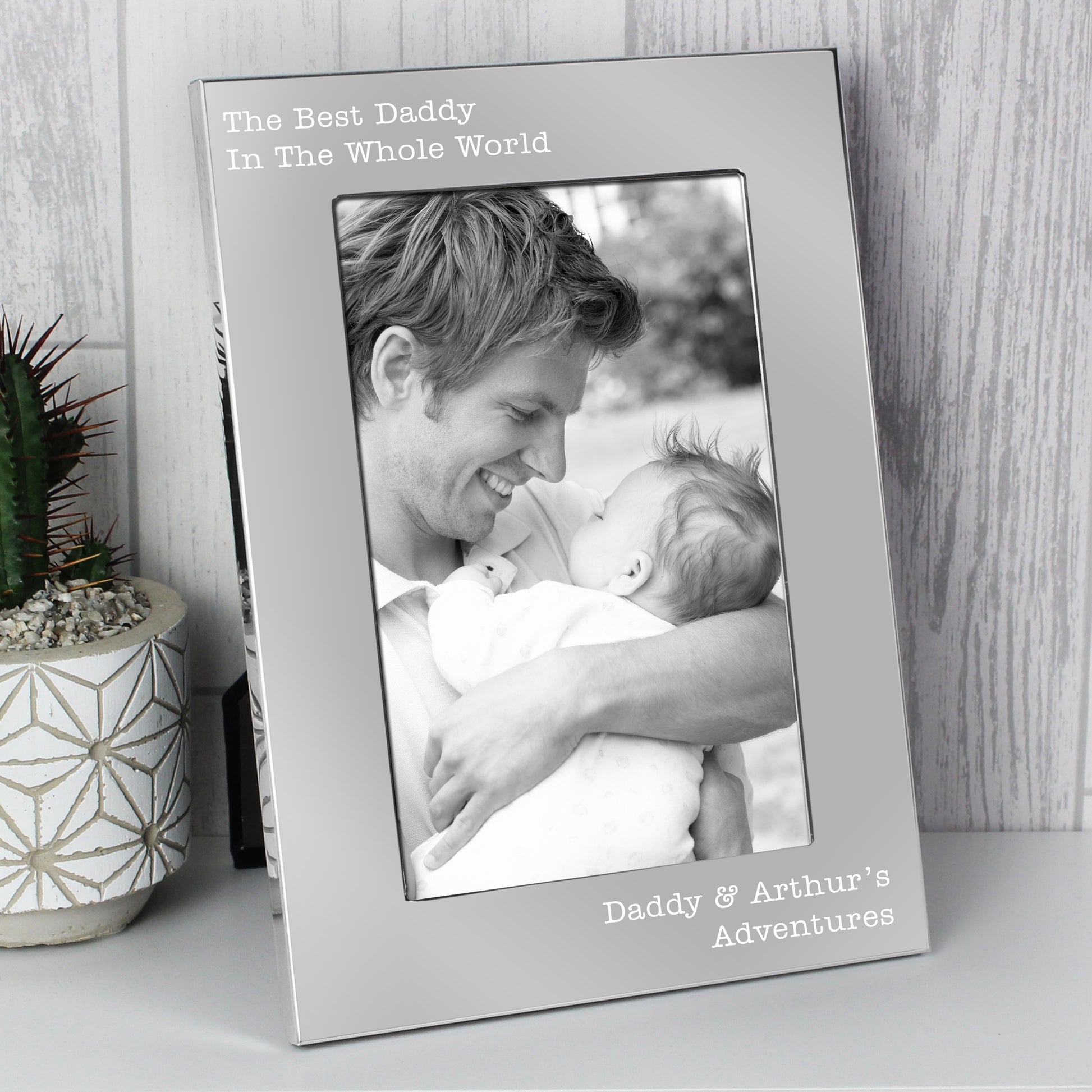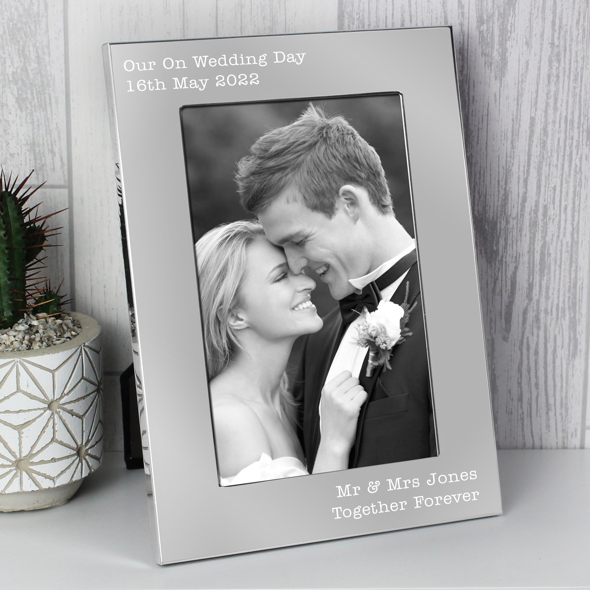 Personalise this silver 5x7 Free Text photo frame with any message with up to 4 lines, each line has 30 characters available.