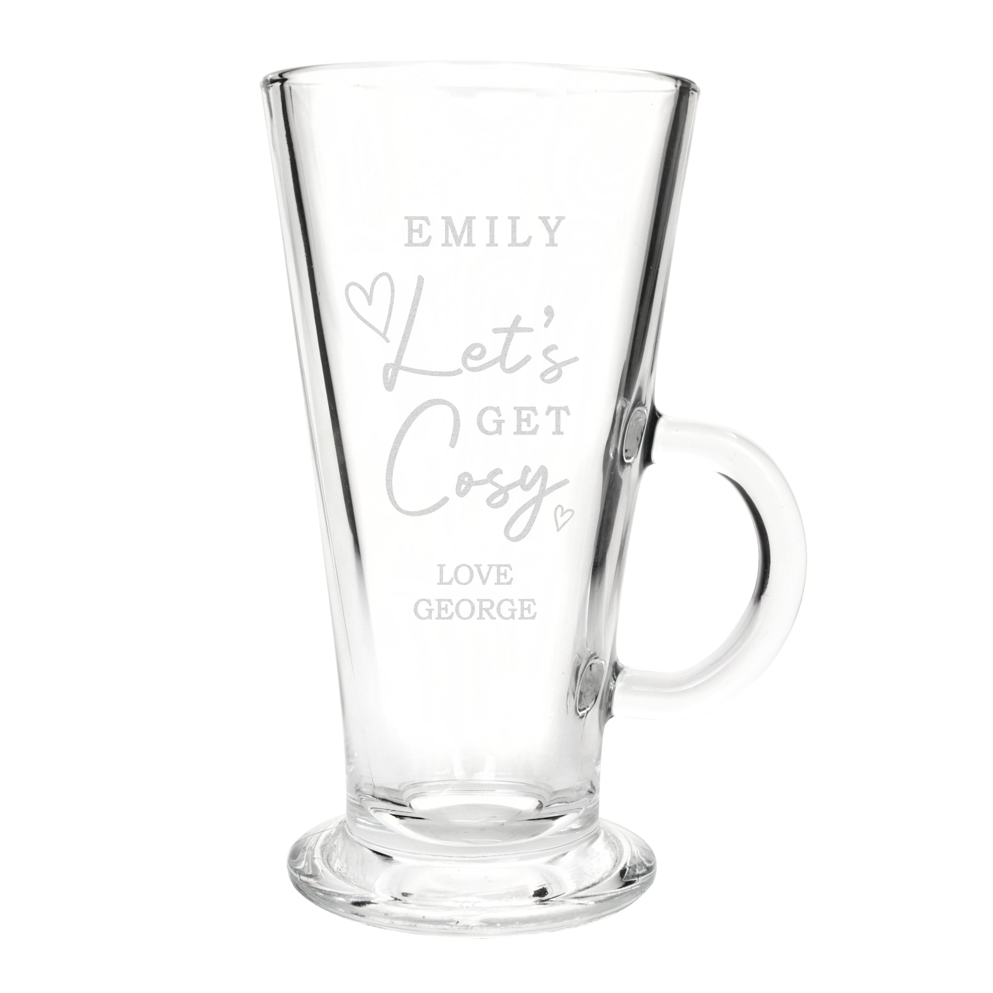 Snuggle up with a hot beverage and our Personalised Get Cosy Glass Latte.