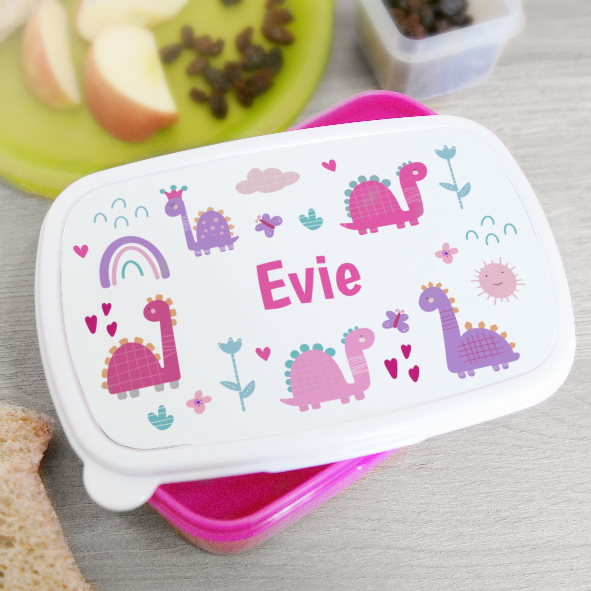Personalised Girly Dinosaurs Name Only Pink Lunch Box