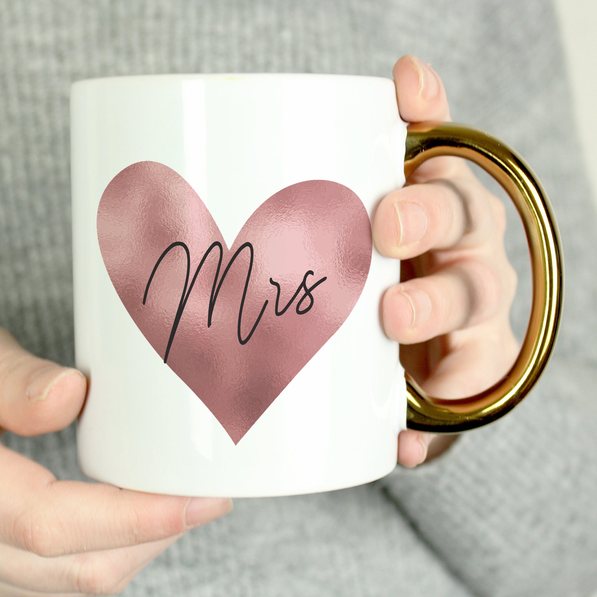 Personalise this lovely gold handled mug with a name with up to 12 characters on the front of the mug and a role/title on the back on the mug up to 12 characters.