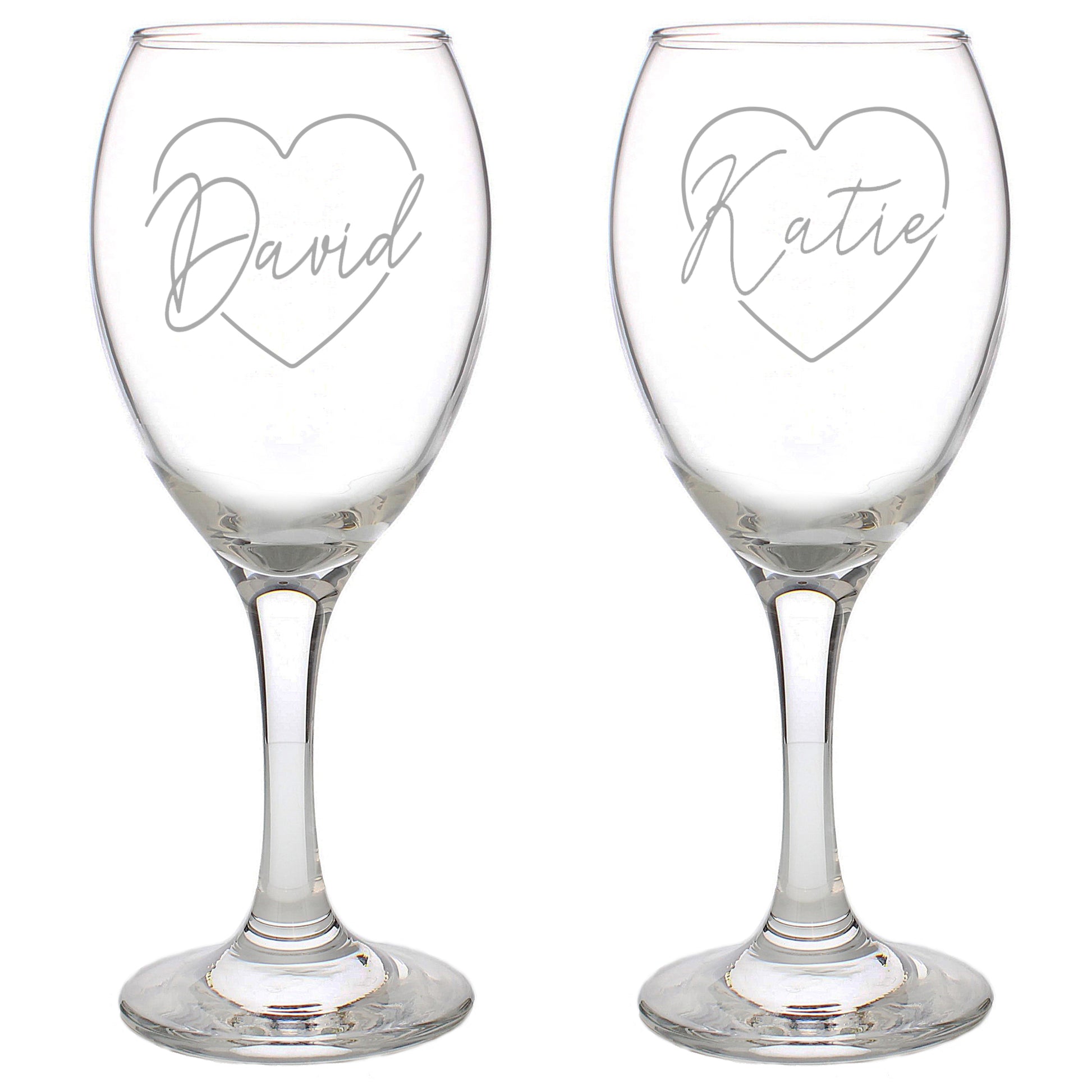 Personalised Heart Name Wine Glass Set