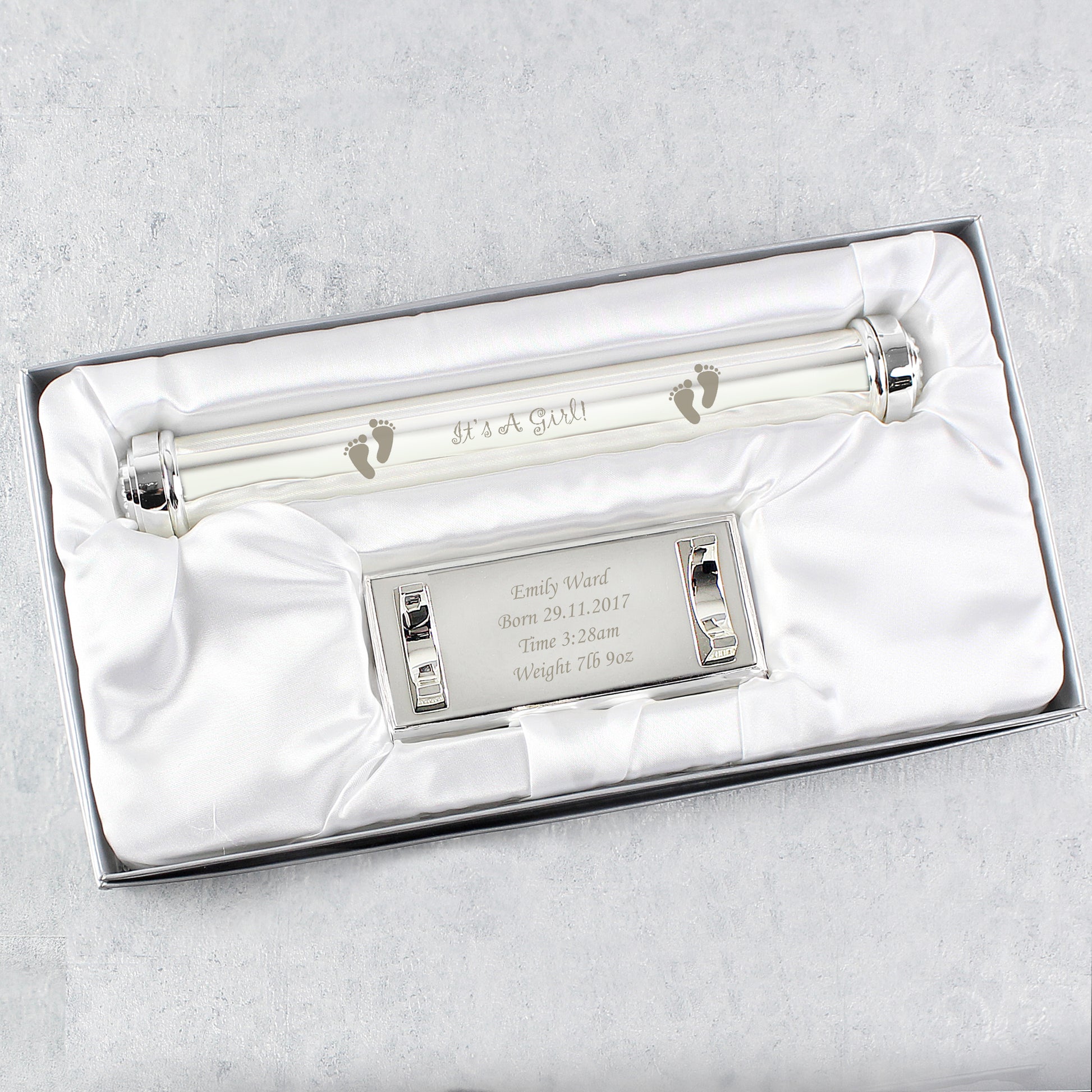 Personalised Its A Girl Silver Plated Certificate Holder
