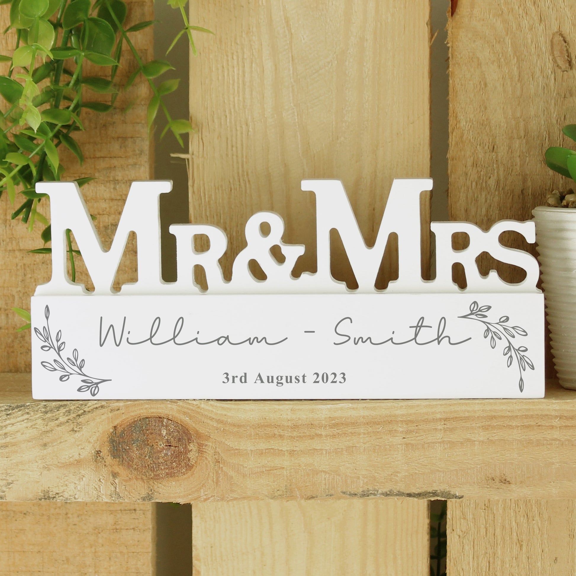 This Personalised Leaf Wooden Mr & Mrs Ornament is perfect Weddings!