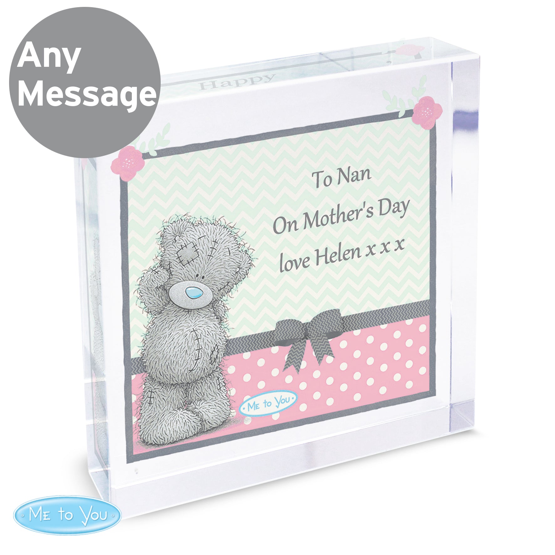 Personalise this Me To You Mother's Day Crystal Token with 3 lines of text up to 20 characters per line. All personalisation is case sensitive and will appear as entered.