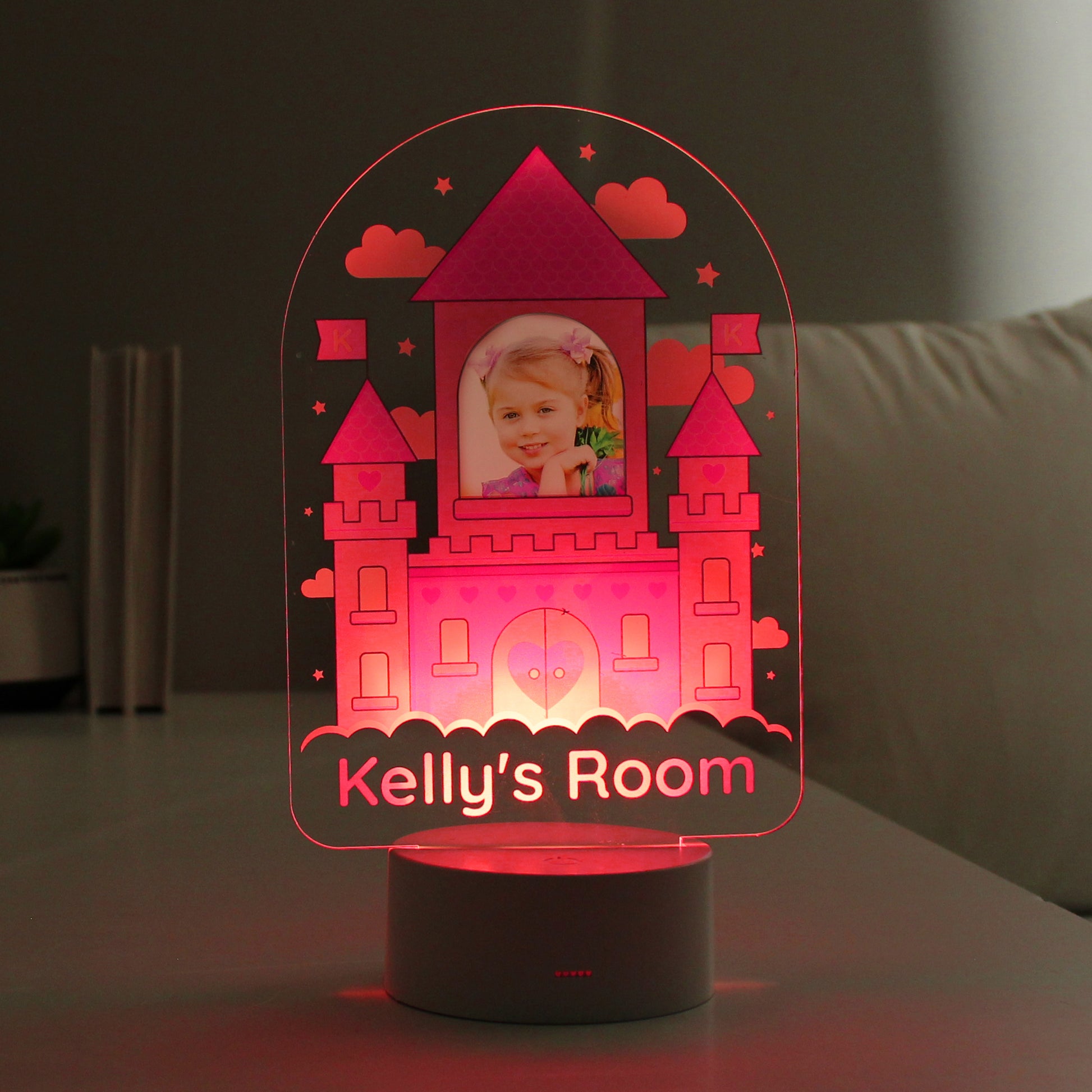 Personalised Pink Castle Photo Upload LED Colour Changing Night Light