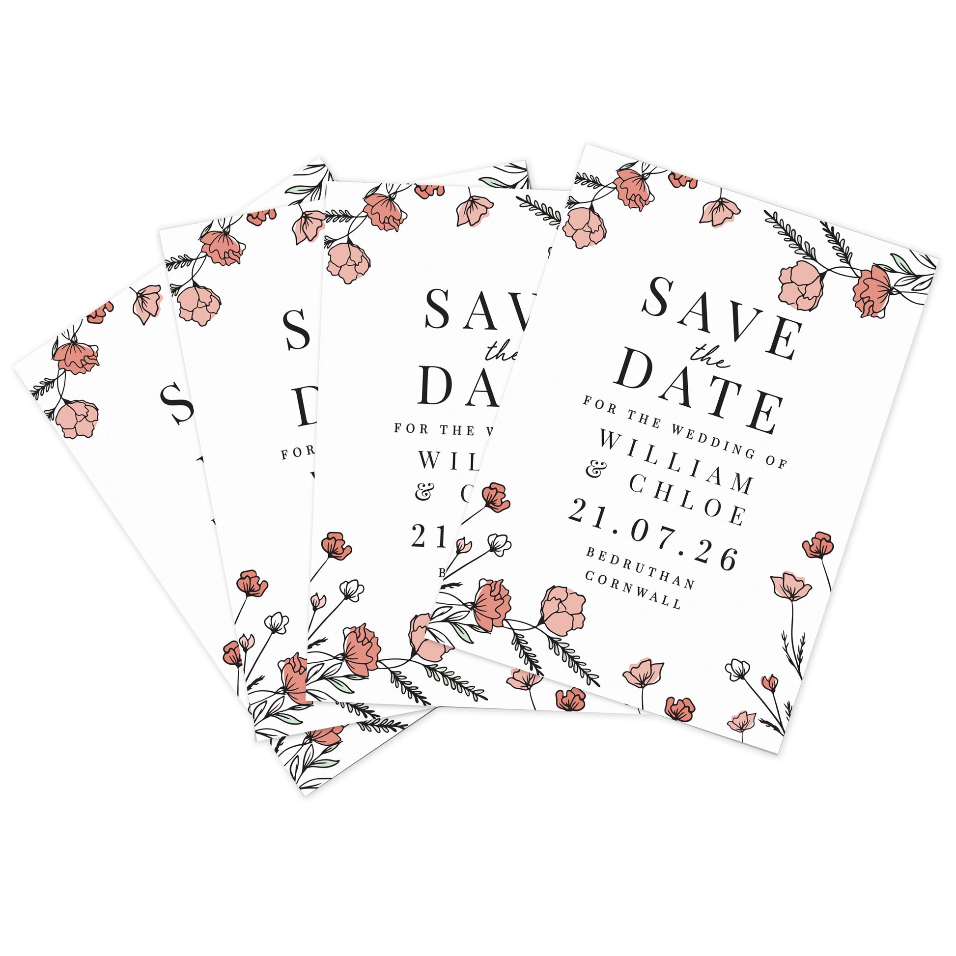 Send a stylish reminder for your wedding guests to save the date with this personalised pink floral design.