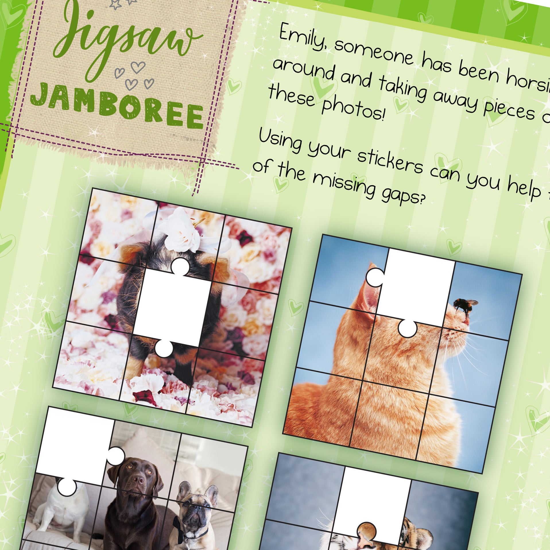 Personalise this activity book with a name and a message. The name (12 characters in length) appears on the front cover and also throughout the activities. The message appears on the first page and can fit 4 lines of text, with up to 20 characters per line.