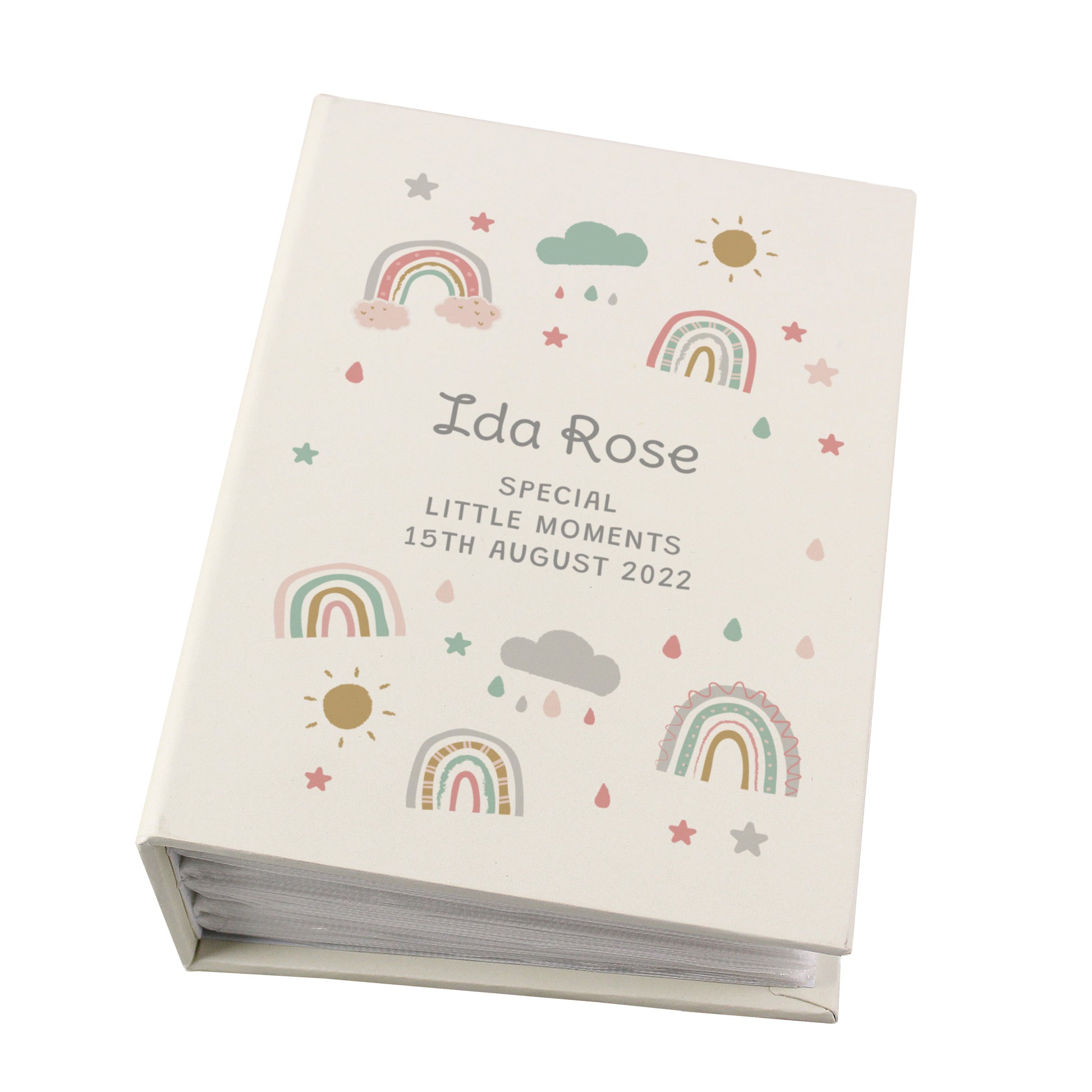 This 6x4 photo album with a rainbow design is a lovely way to celebrate a little one's first year or to capture those special milestones.