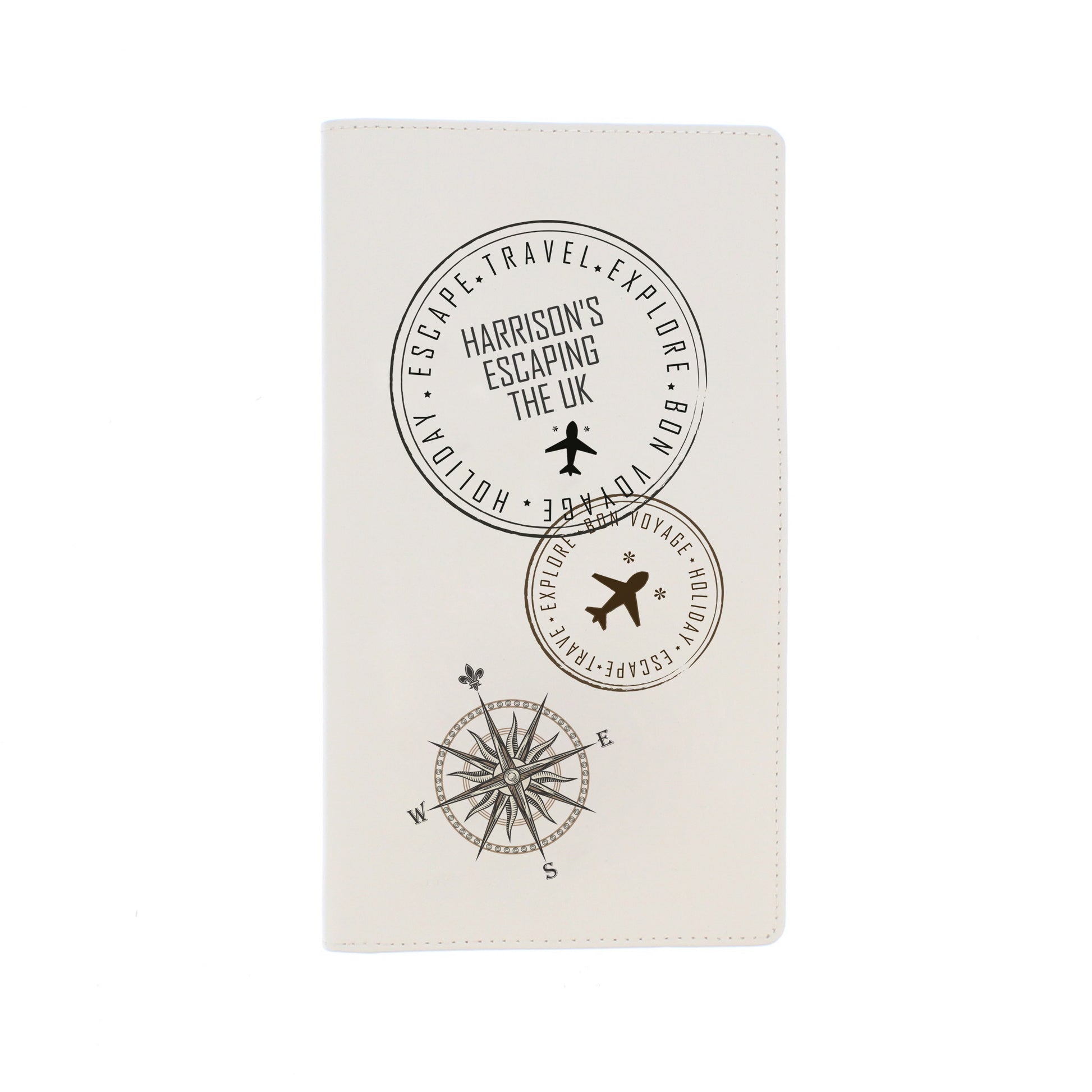 Personalise the front of this travel document holder with 3 lines of text up to 12 characters per line, which will appear in the centre of the larger circle. All personalisation will appear in UPPERCASE.