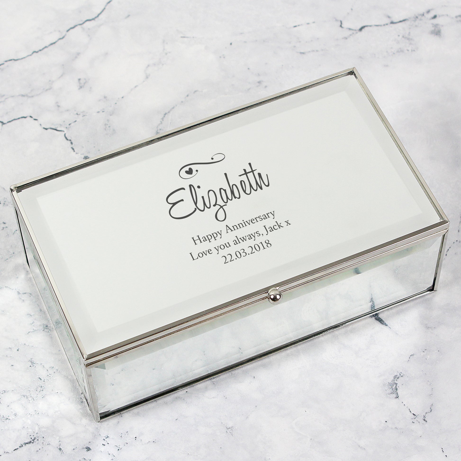 Personalised Swirls & Hearts Mirrored Jewellery Box