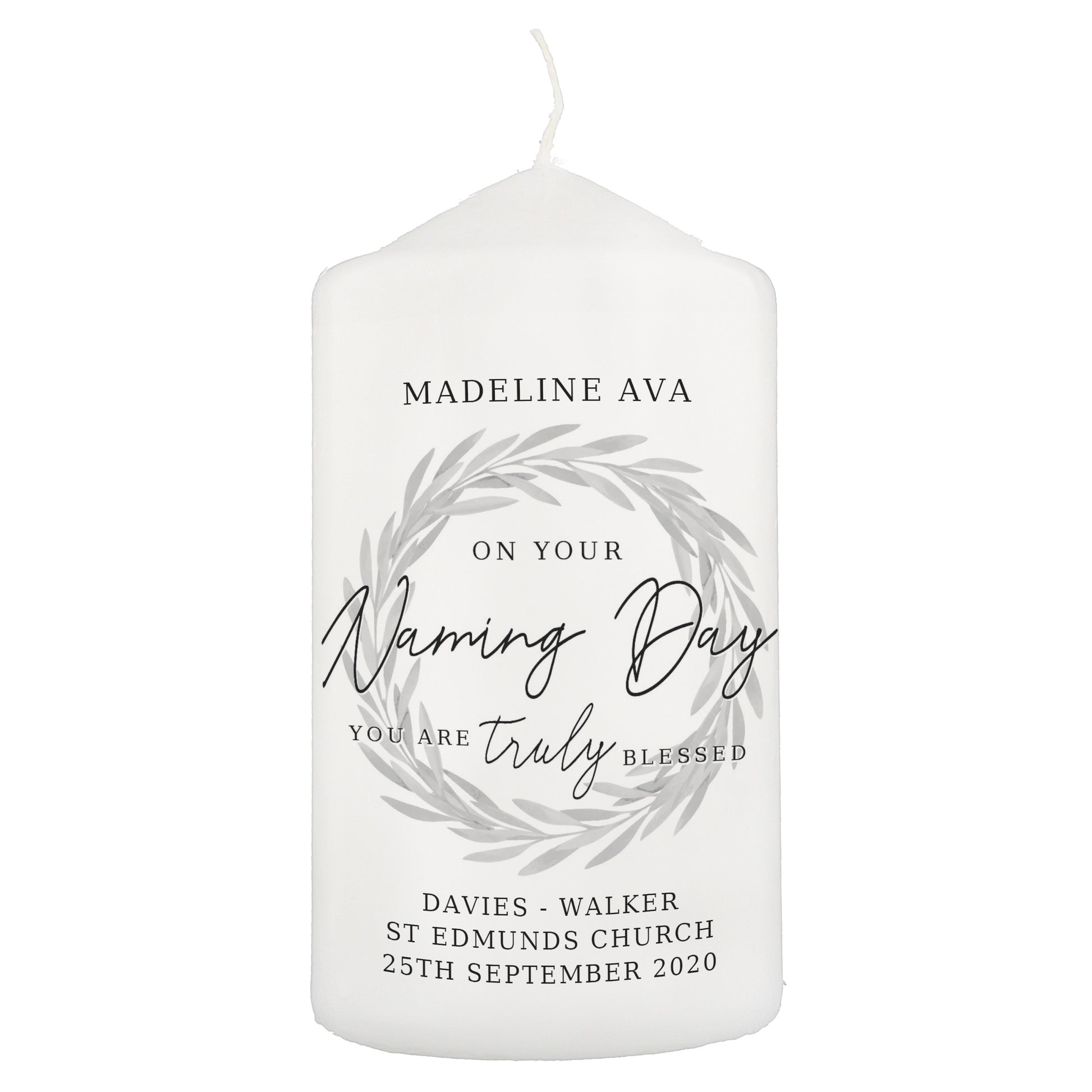 Personalised Truly Blessed Naming Day Pillar Candle