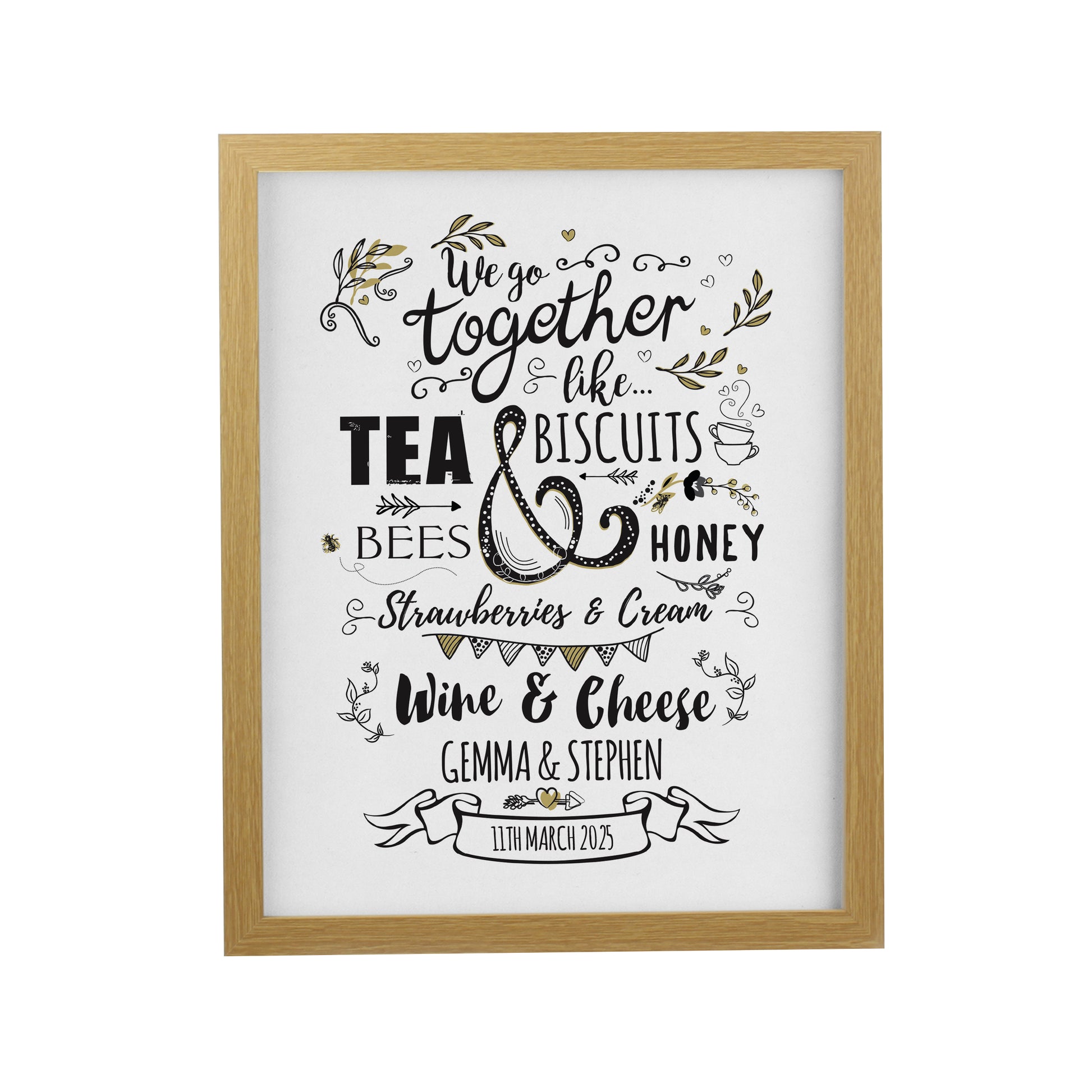 The words 'We go together like...Tea & Biscuits, Bees & Honey, Strawberries & Cream, Wine & Cheese' are fixed.
