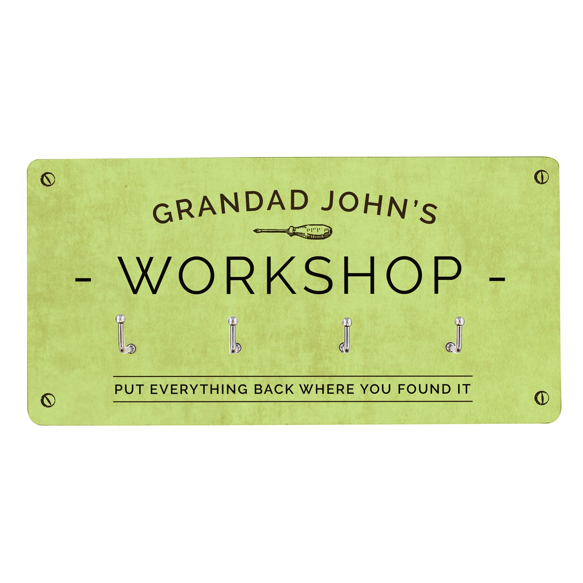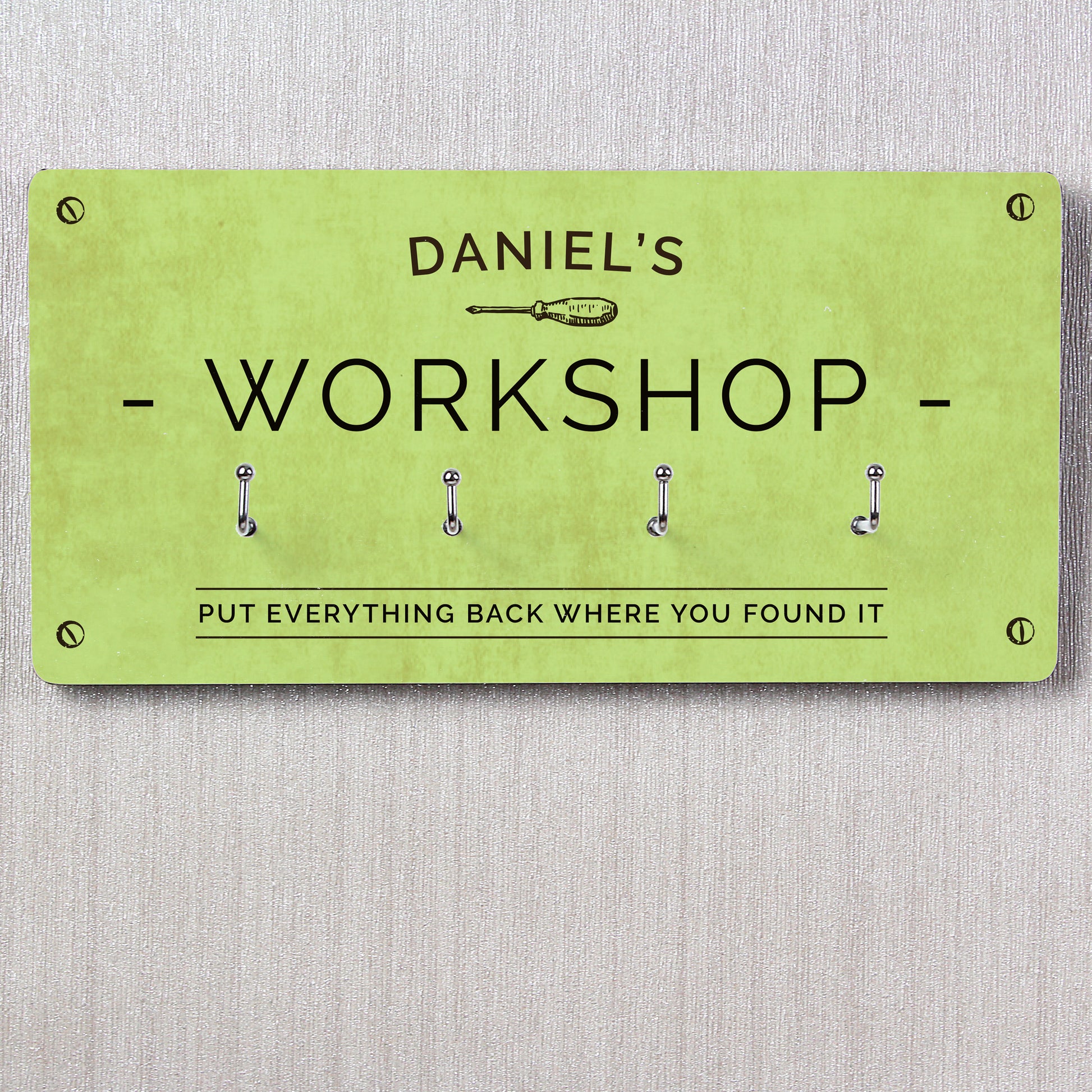 The wall hooks can be personalised with a line of text at the top, e.g. 'Harry's Car' up to 15 characters.
